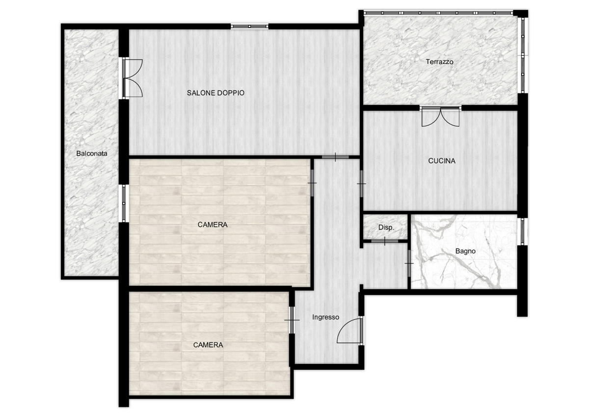 L'immobile, posto all'undicesimo piano, composto da: ingresso, 2 camere, cucina abitabile da cui si accede al terrazzo, salone doppio, balconata, bagno con finestra e dispensa.