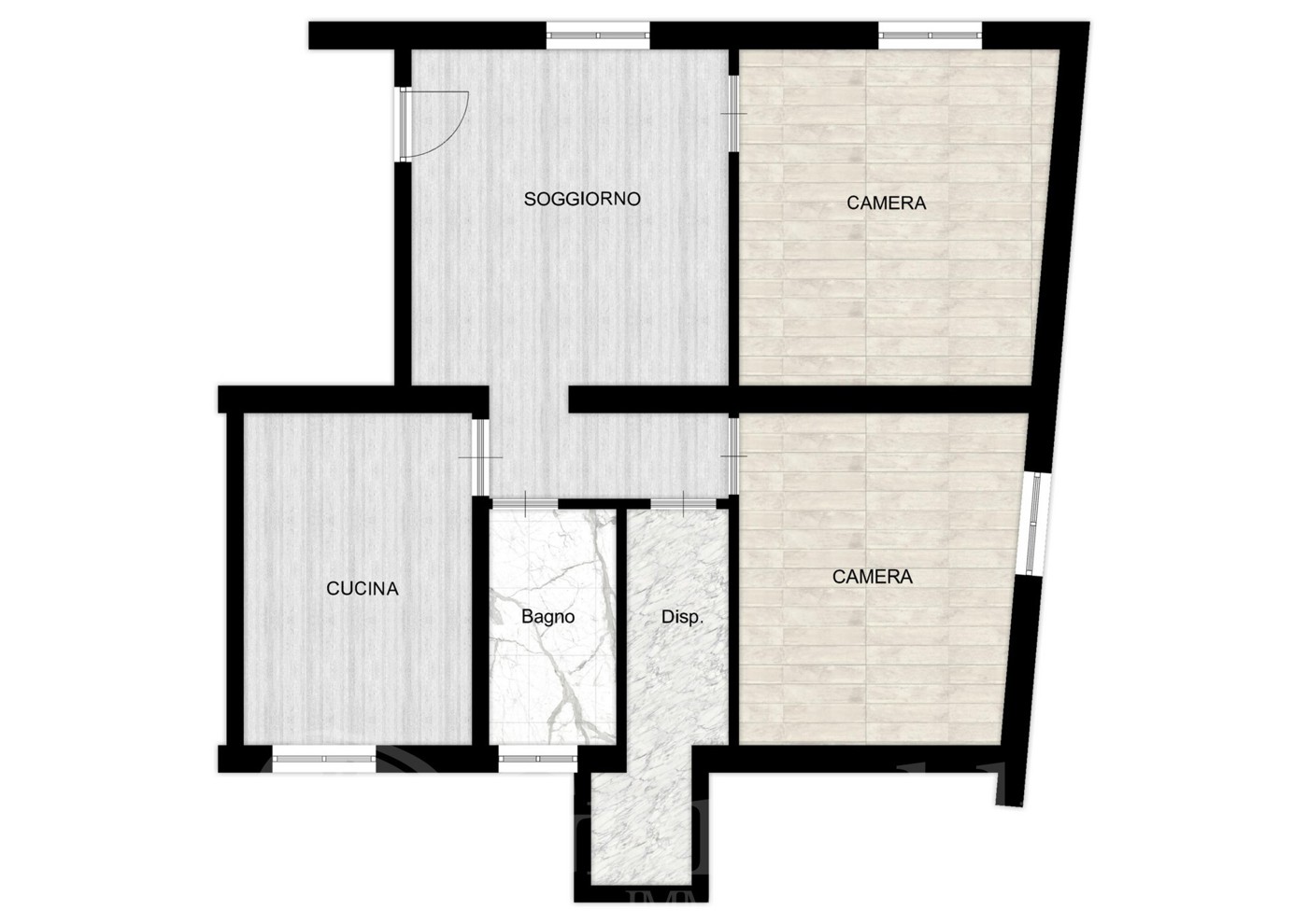 L'immobile composto da un'accogliente salotto d'ingresso, la cucina abitabile, due camere da letto, il bagno ed un comodo ripostiglio/lavanderia.