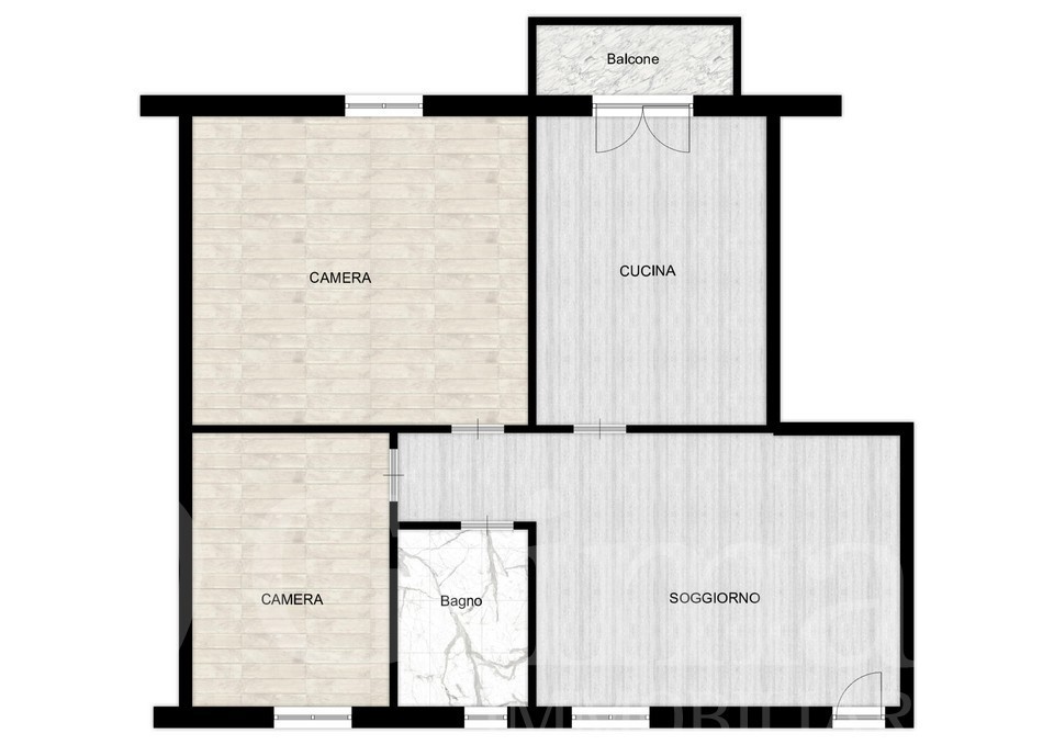 L'immobile composto da: ingresso in sala, 2 camere, cucina abitabile da cui si accede al balcone e bagno.