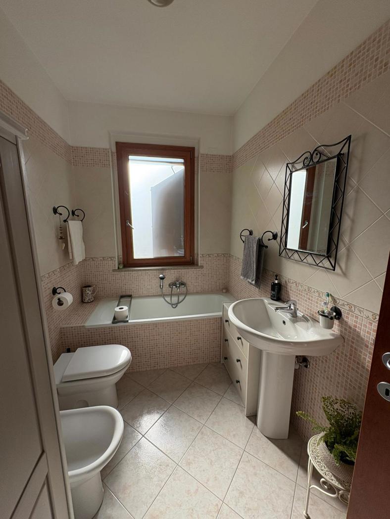 Sempre al piano inferiore presente un bagno finestrato, comodo e ben distribuito.