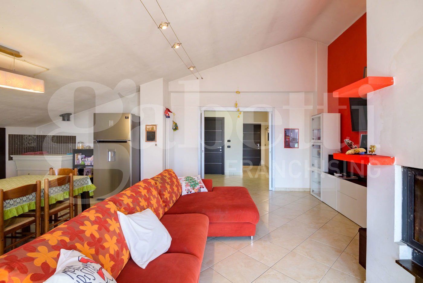 Lingresso si apre su un grande salone accogliente, perfetto per le serate in famiglia o con amici.