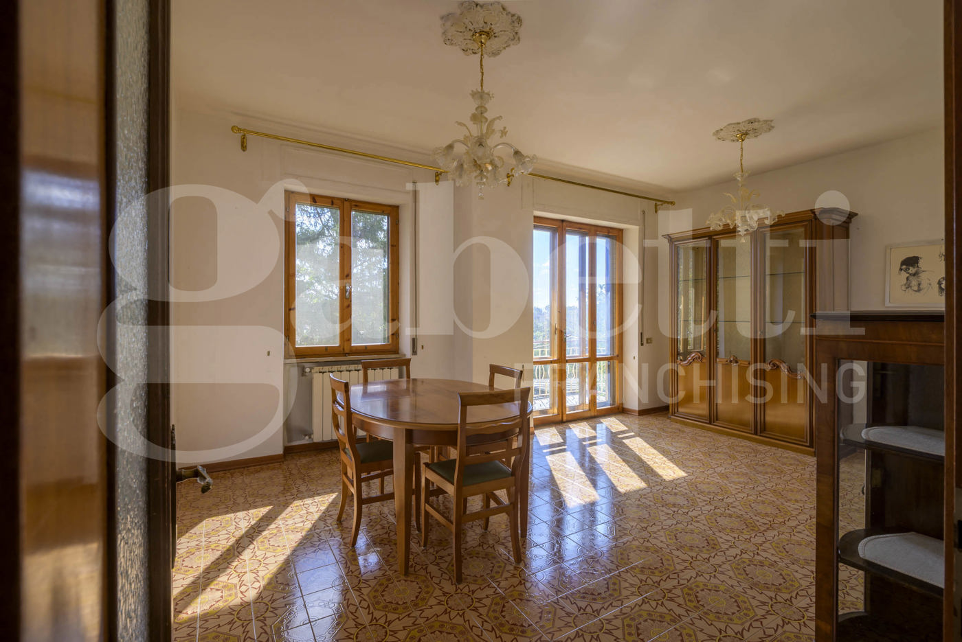 Si compone di ingresso, luminoso salone, zona pranzo con cucina a vista, due camere matrimoniali di cui una con bagno, camera singola, studio,secondo bagno.