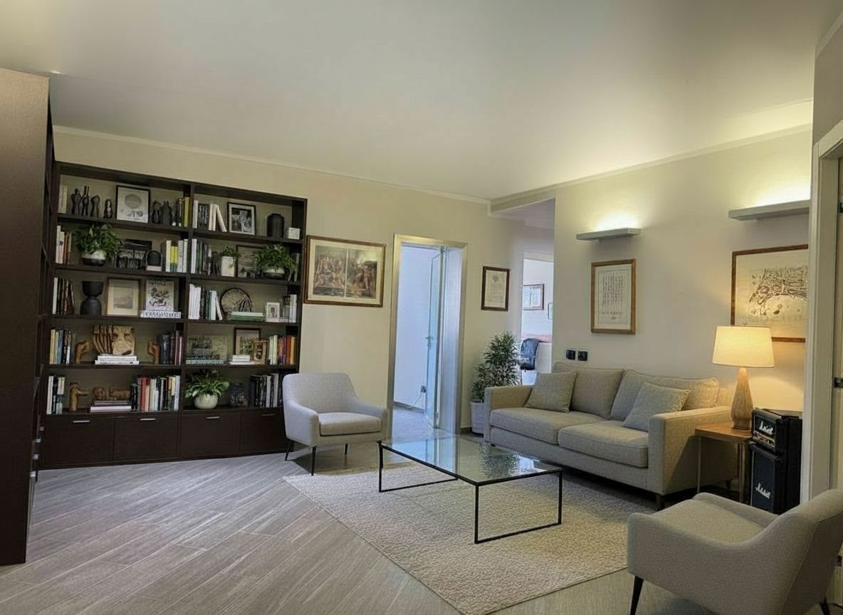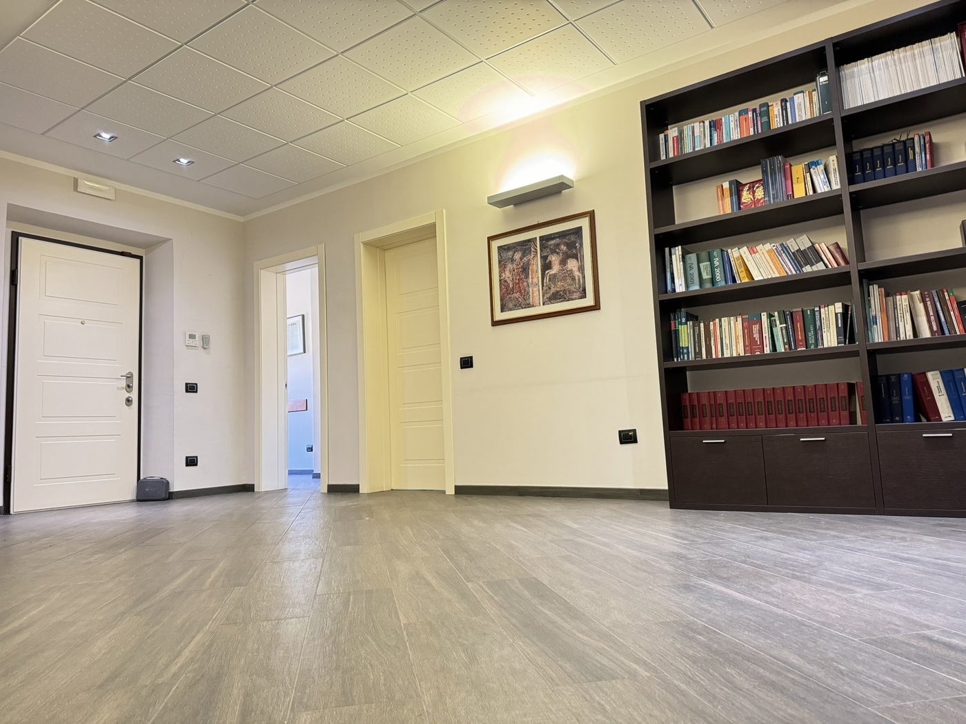 Alla sinistra dellingresso previsto uno studio elegante, ideale per chi necessita di uno spazio riservato al lavoro o alla lettura.
