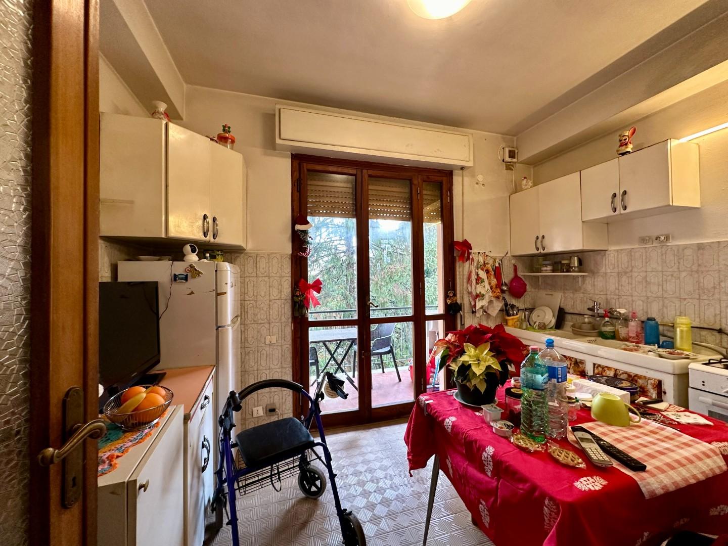 Labitazione si apre su un ingresso che conduce all'ampio soggiorno con balcone e alla cucina abitabile separata.
