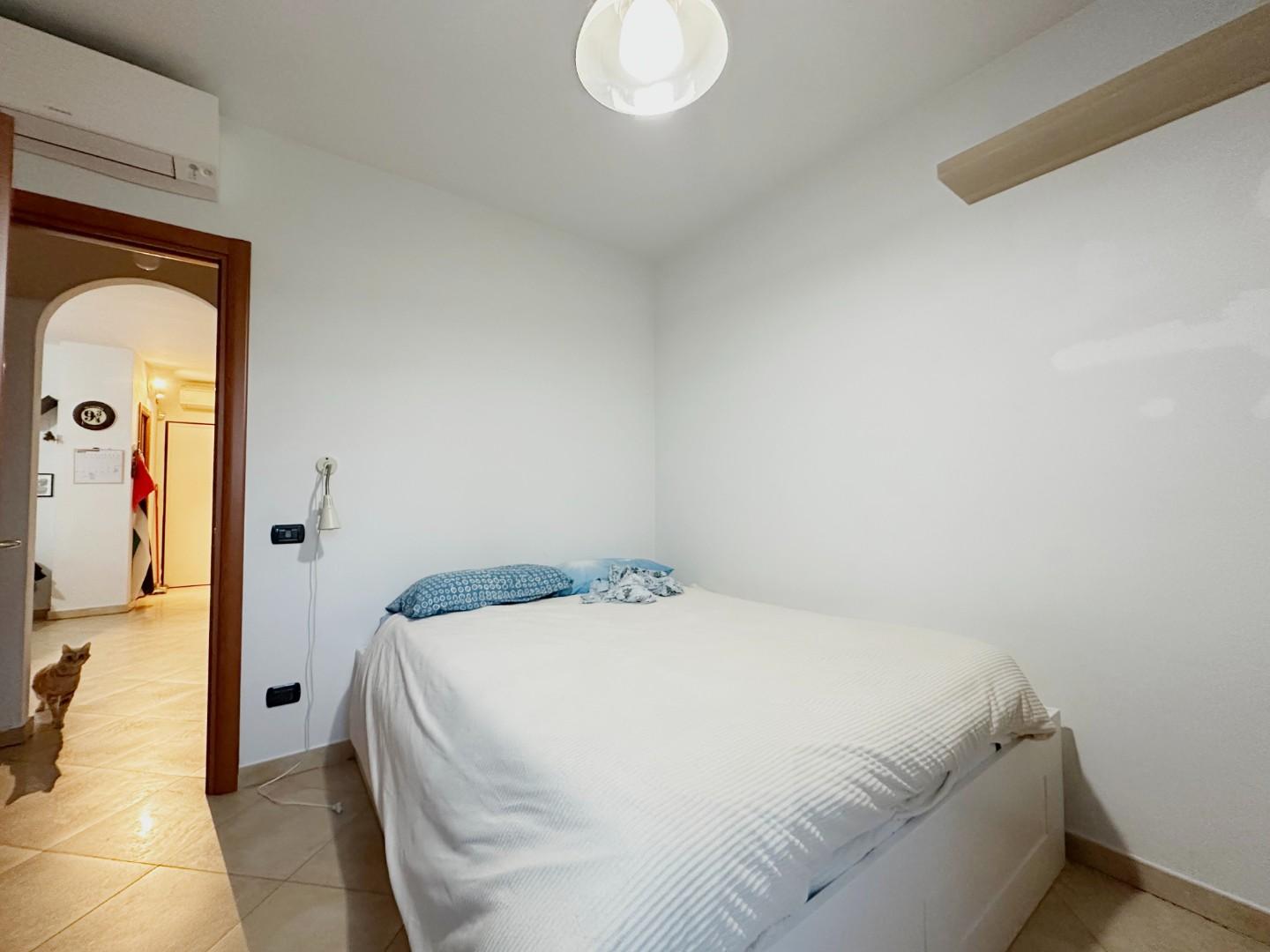 La zona notte ospita due camere da letto, una delle quali con balcone, oltre a un bagno con doccia e a un comodo ripostiglio.