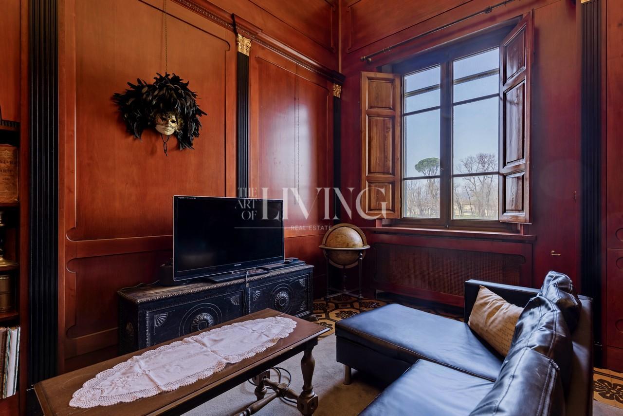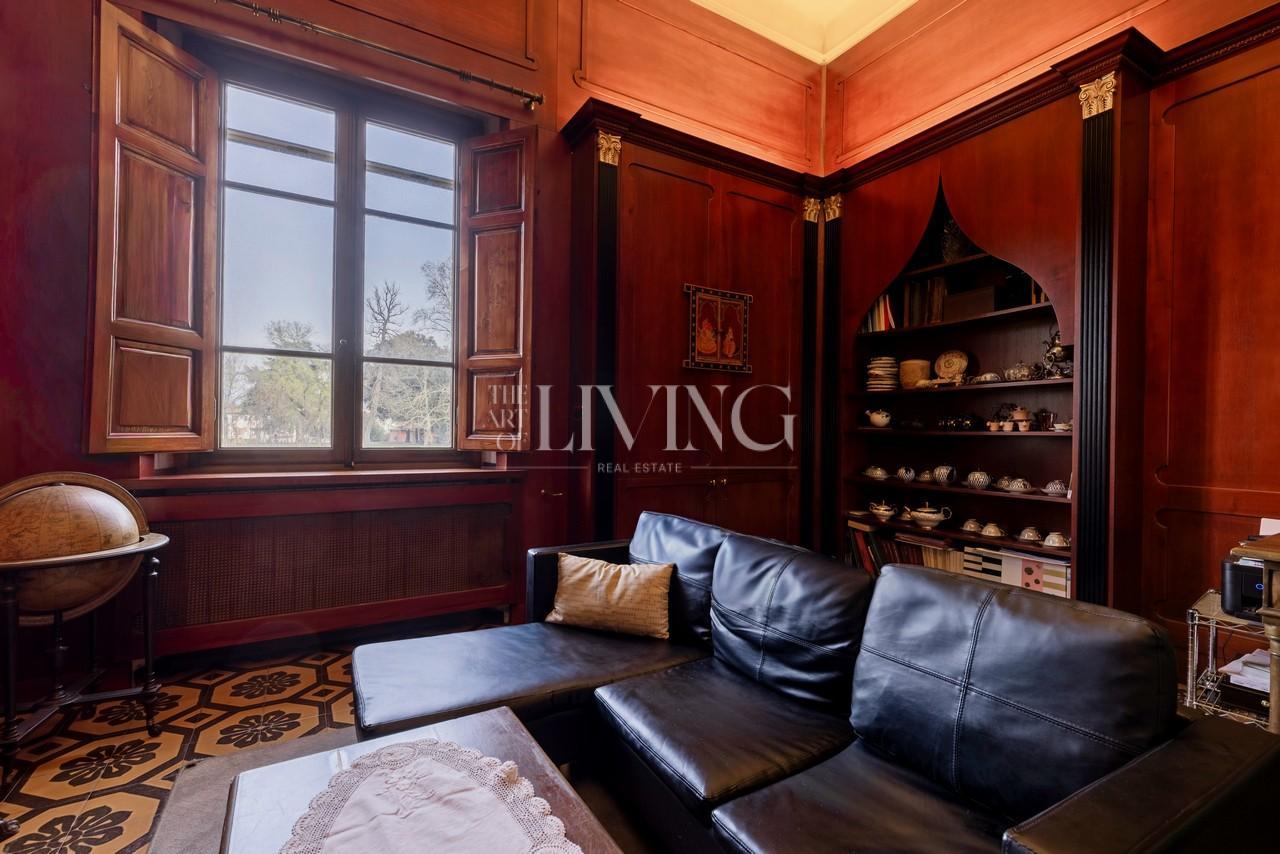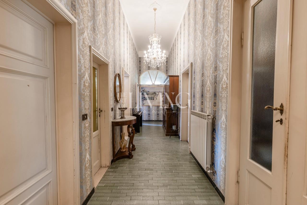 Allinterno della proprietà è in vendita lappartamento situato al secondo e ultimo piano raggiungibile attraverso lelegante scala interna centrale in marmo, impreziosita da una raffinata ringhiera in ferro battuto, oppure tramite un moderno ascensore in vetro che permette laccesso anche alle persone con disabilità Lappartamento di circa 185 mq, posto al secondo ed ultimo piano, si sviluppa attorno a un corridoio alla cui destra troviamo una stanza utilizzata come cabina armadi, un soggiorno definito da una boiserie, una camera matrimoniale con pavimenti in Tessieri, una sala da pranzo con cucina a vista incorniciata da un elegante arco, due spaziose camere, un bagno di servizio e un bagno finestrato completo di vasca e doccia.