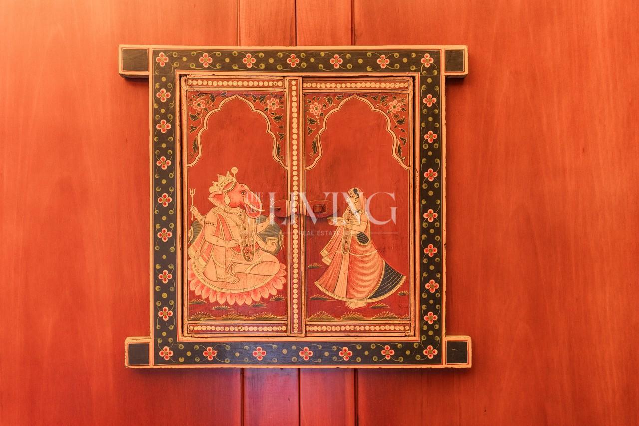 Lintera villa conserva intatto il fascino dello stile Liberty, valorizzato da splendidi affreschi decorativi.