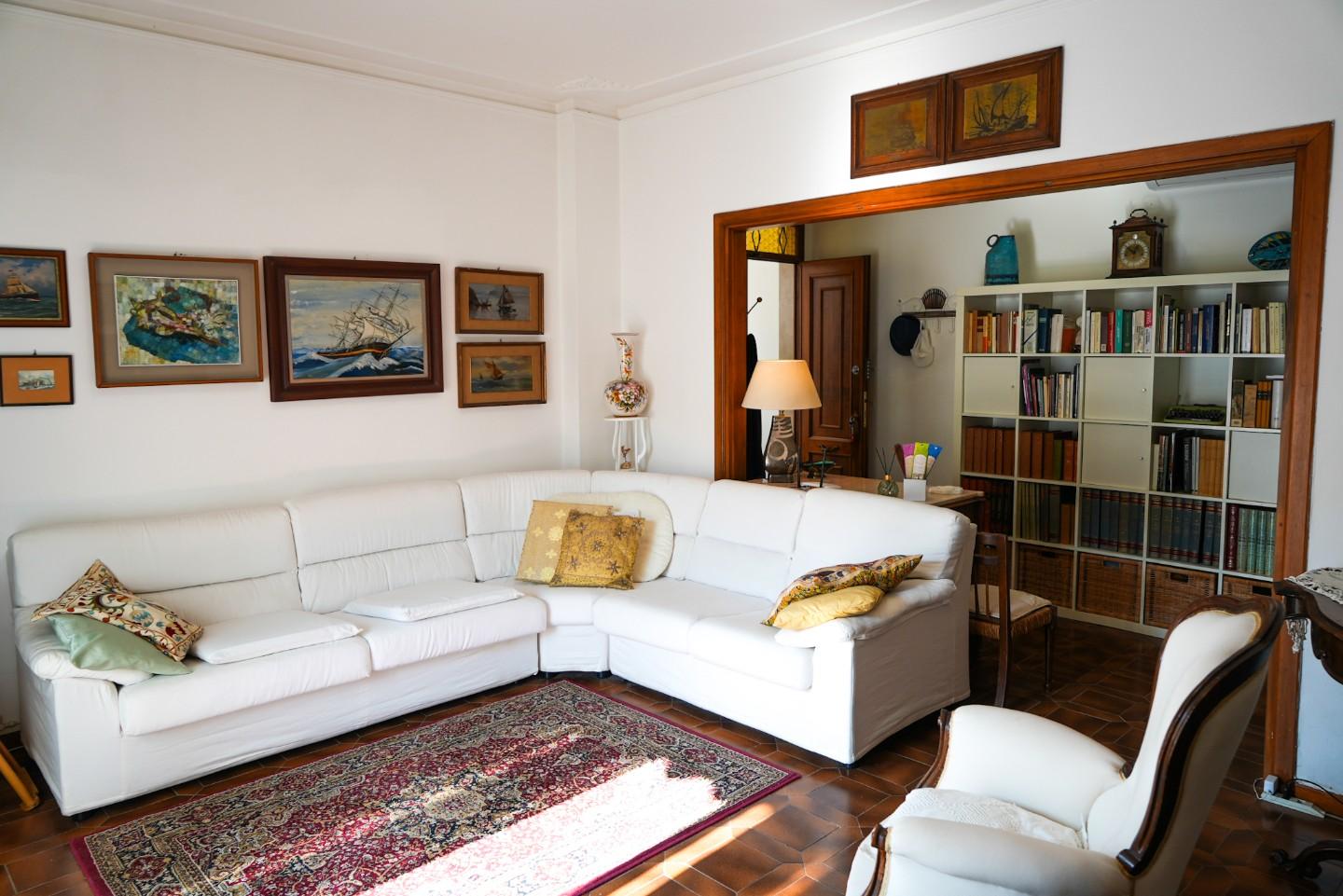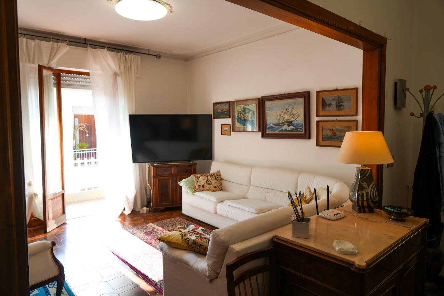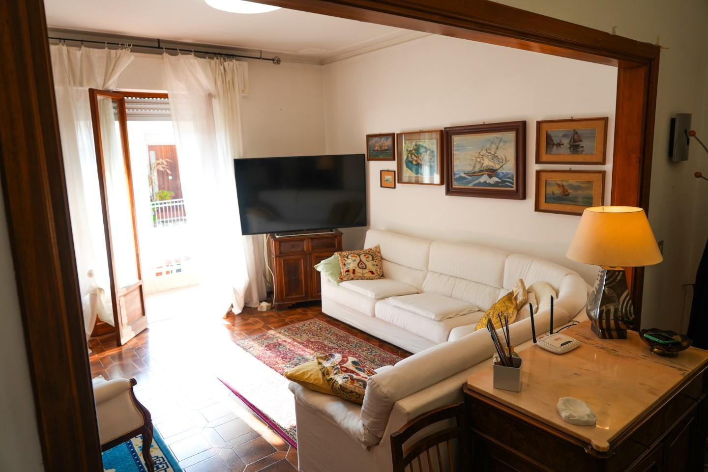 L'appartamento, sito al primo piano di un edificio dei primi anni '80 di soli tre piani fuori terra (Piano terra, primo e secondo), si compone di ingresso su ampio soggiorno con balcone lato Viareggio (Levante), cucina abitabile con balcone lato Carrara (Ponente), due camere matrimoniali, una camera singola e bagno finestrato con vasca.