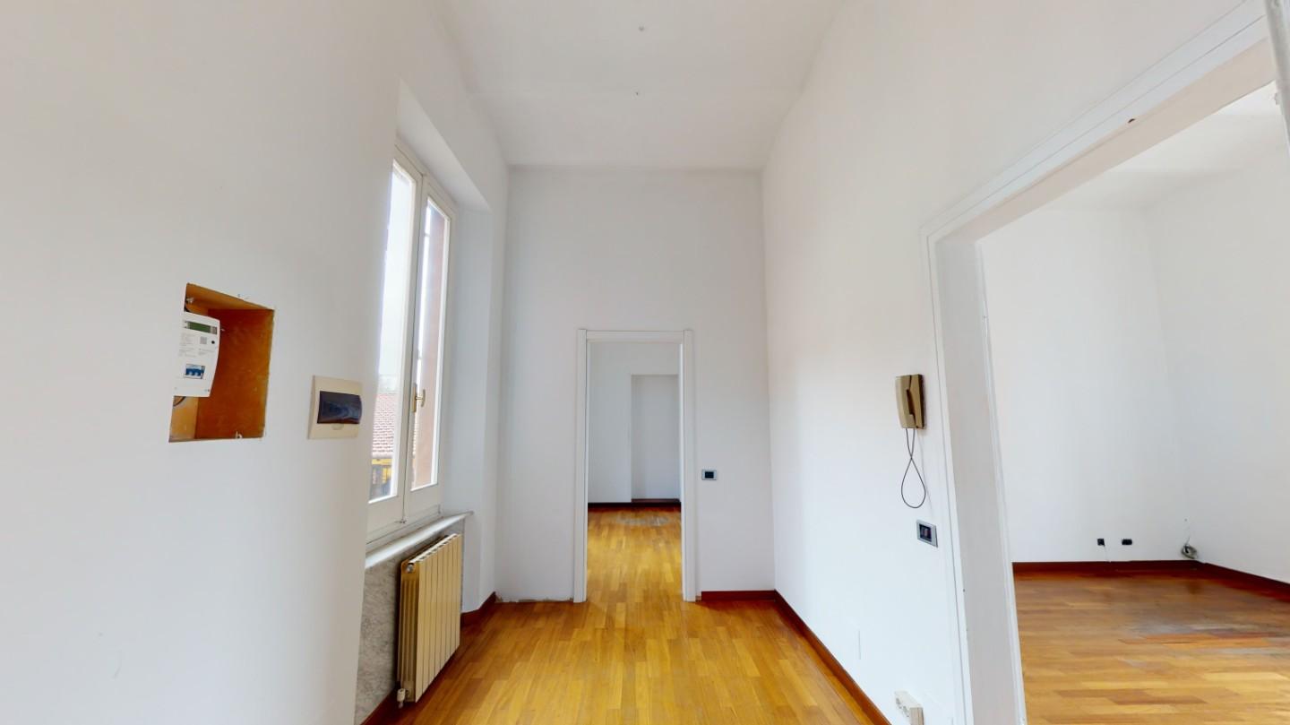 Dallatrio la scala in marmo ci guida fino allingresso, un lungo corridoio che ci conduce alle diverse stanze, quattro vani di metratura generosa, oltre un delizioso balconcino e il servizio.