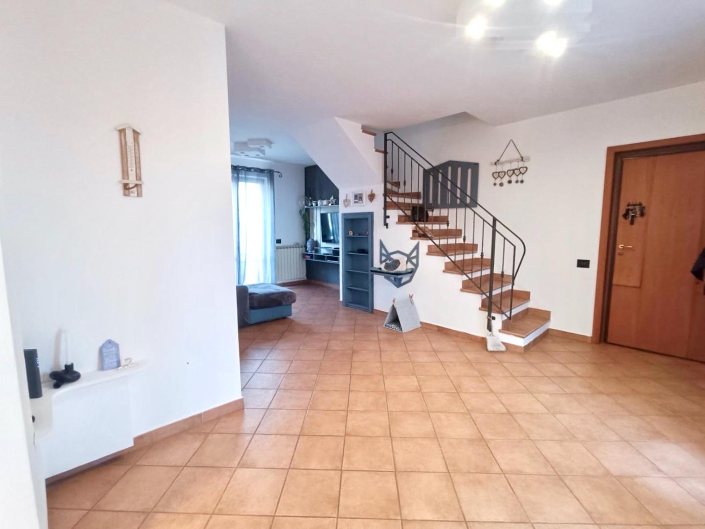L ingresso si apre su un ampio e luminoso soggiorno, ambiente accogliente e ben organizzato, collegato alla cucina con accesso diretto a balcone pranzabile, ideale per momenti di relax e convivialità allaperto.