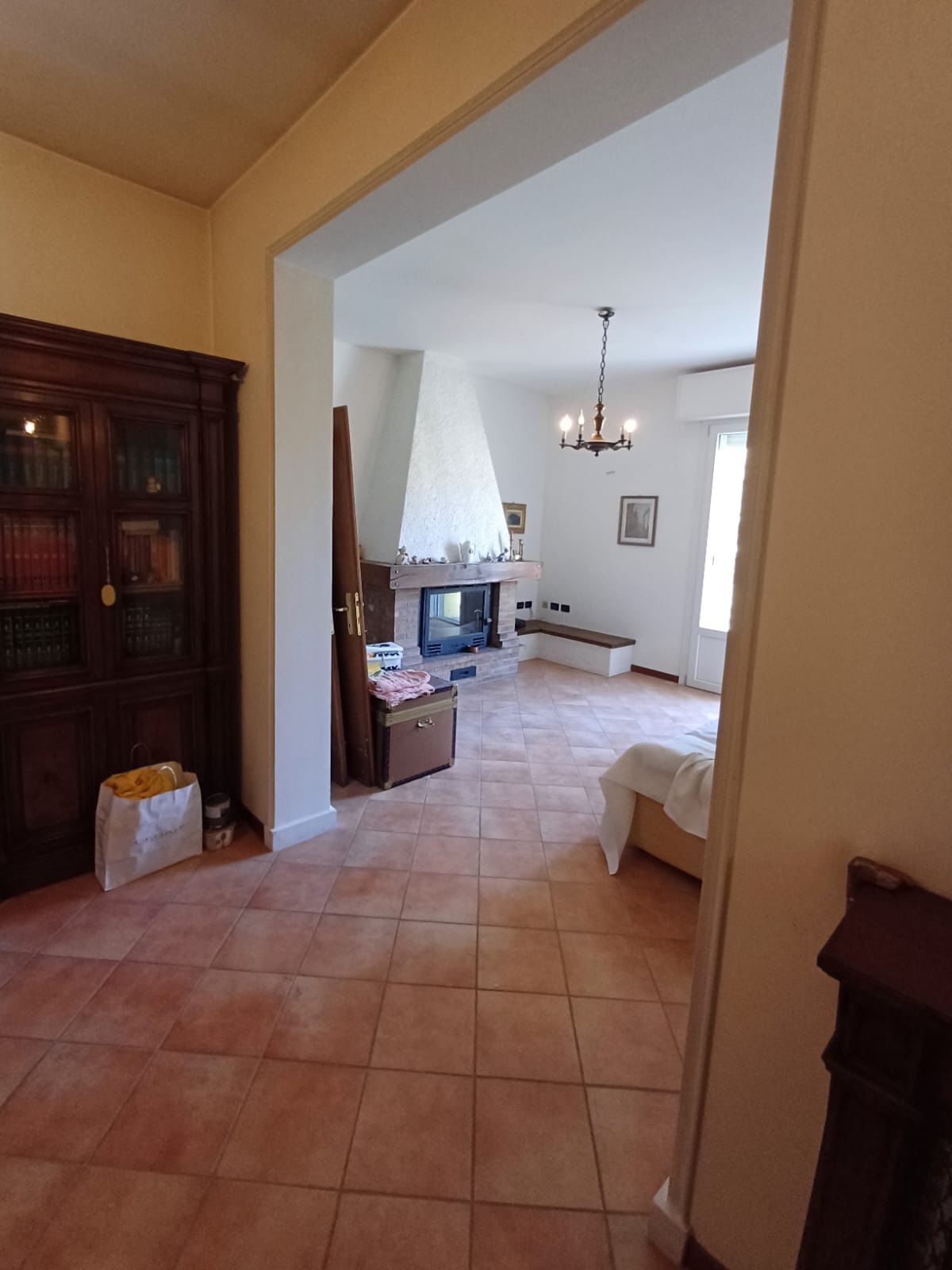 La zona giorno è ampia e luminosa, dotata di un elegante salone con camino e una cucina abitabile arredata, ideale per momenti conviviali.