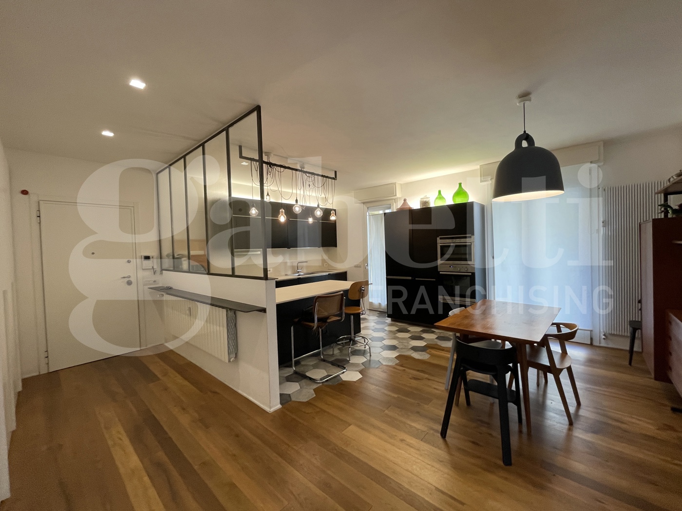 L'appartamento, di recente ristrutturazione composto da ingresso , ampia cucina open-space con penisola e tinello, da cui si pu accedere al balcone con affaccio interno.
