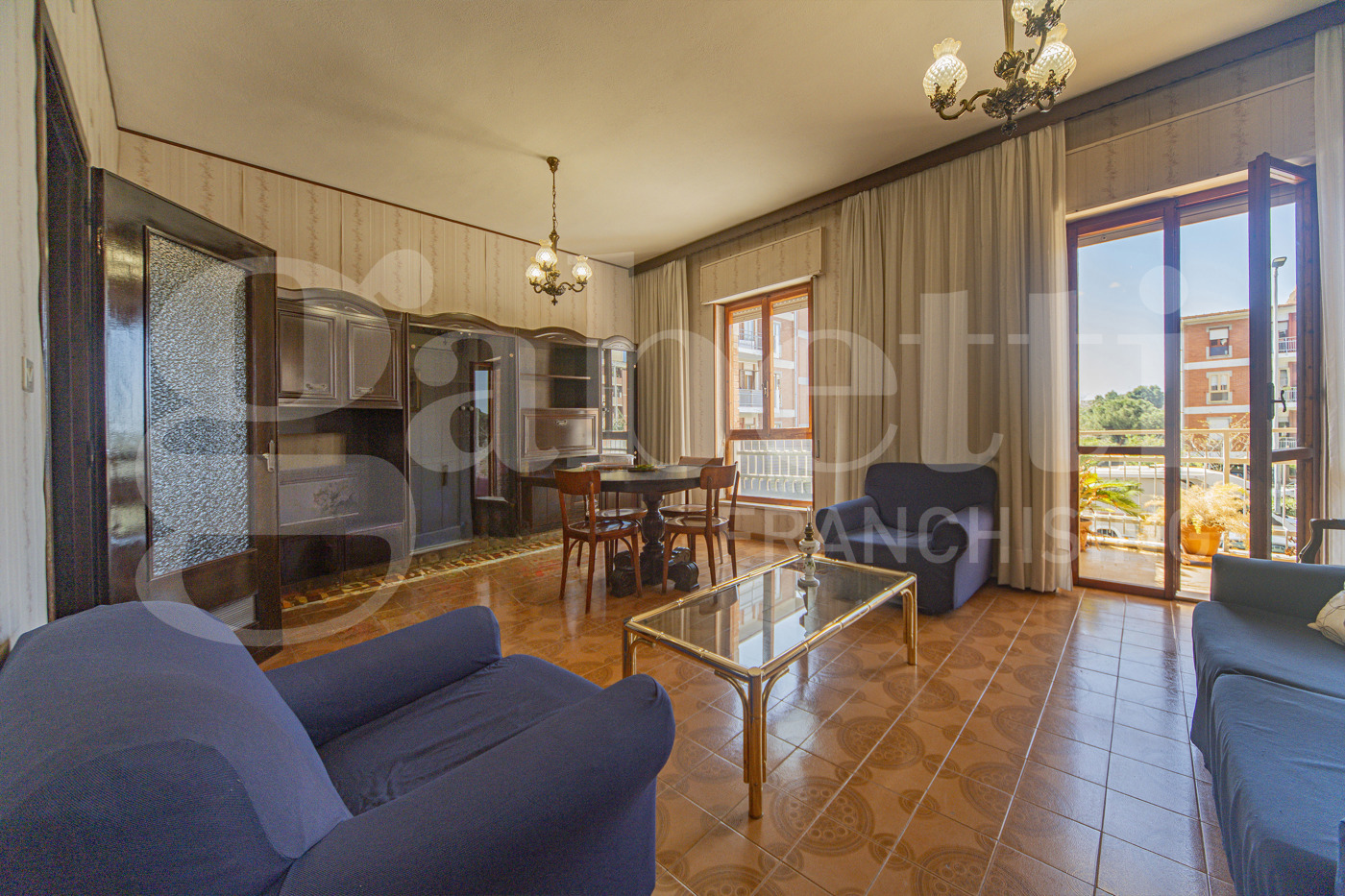 L'appartamento cos disposto: - un doppio soggiorno ideale come zona living e relax, - cucina abitabile, - quattro camere da letto ampie e ben illuminate, - un servizio, - un bagno.