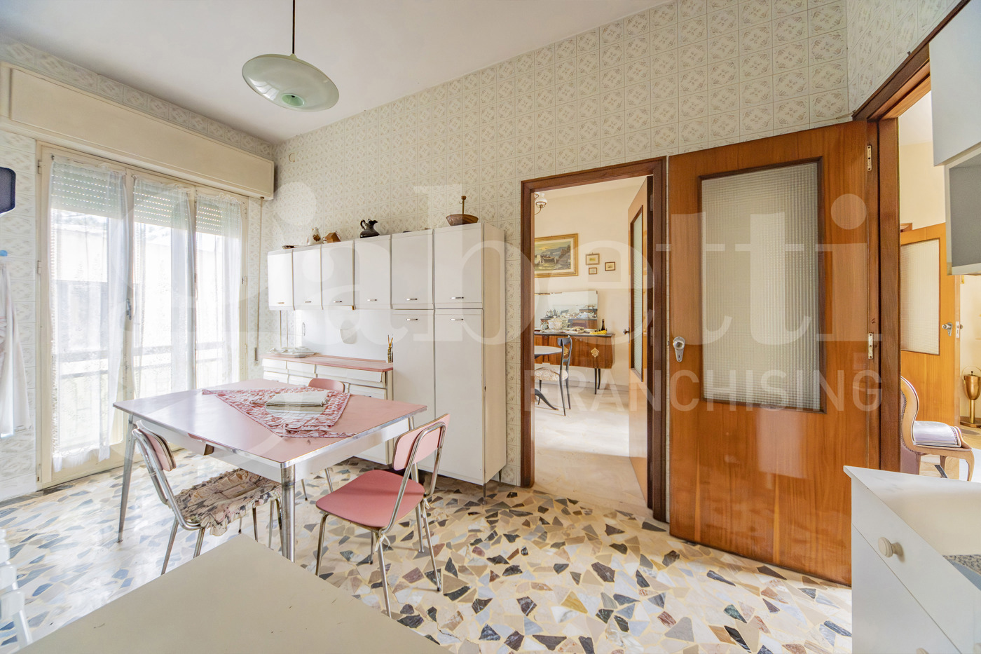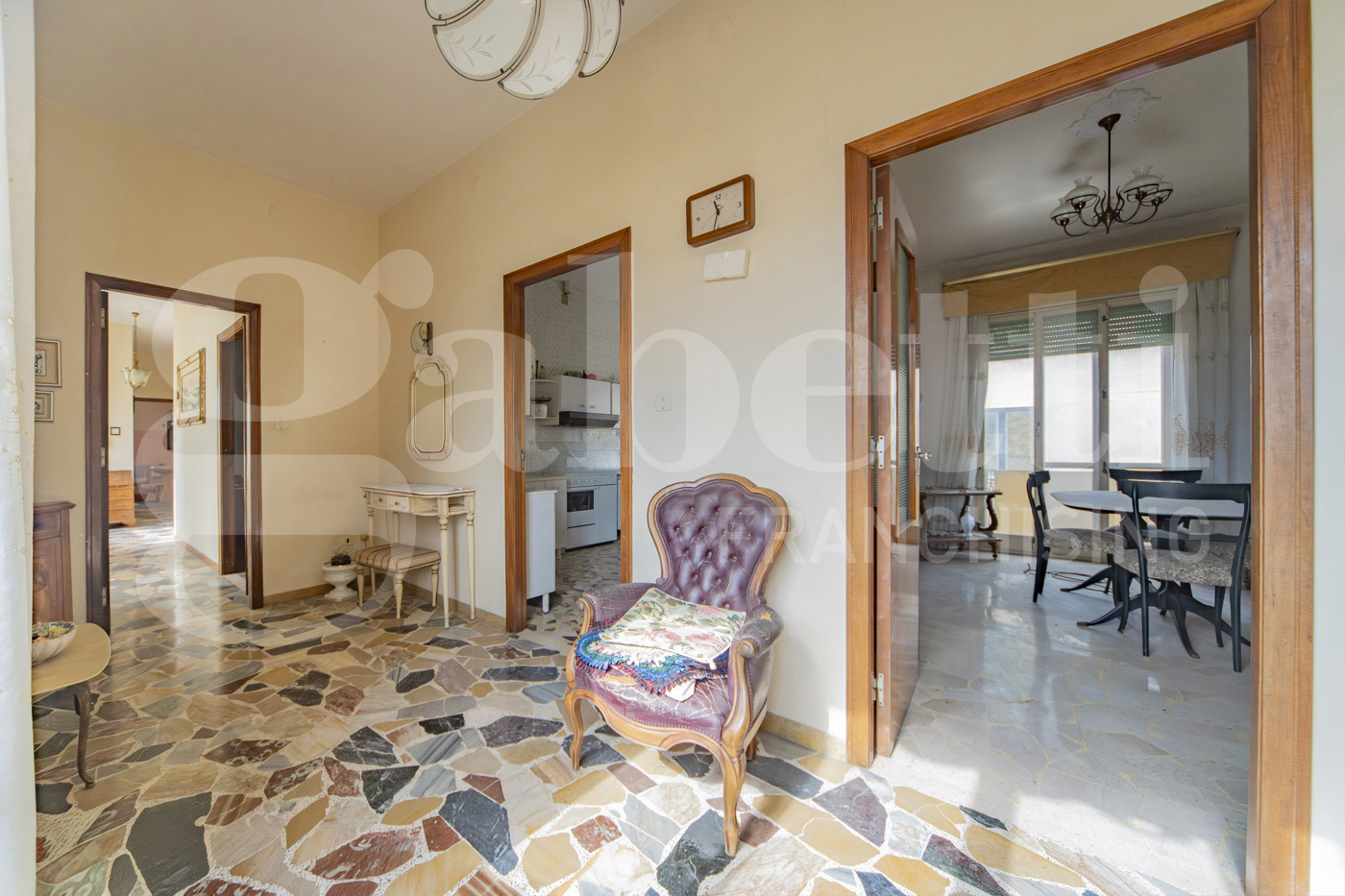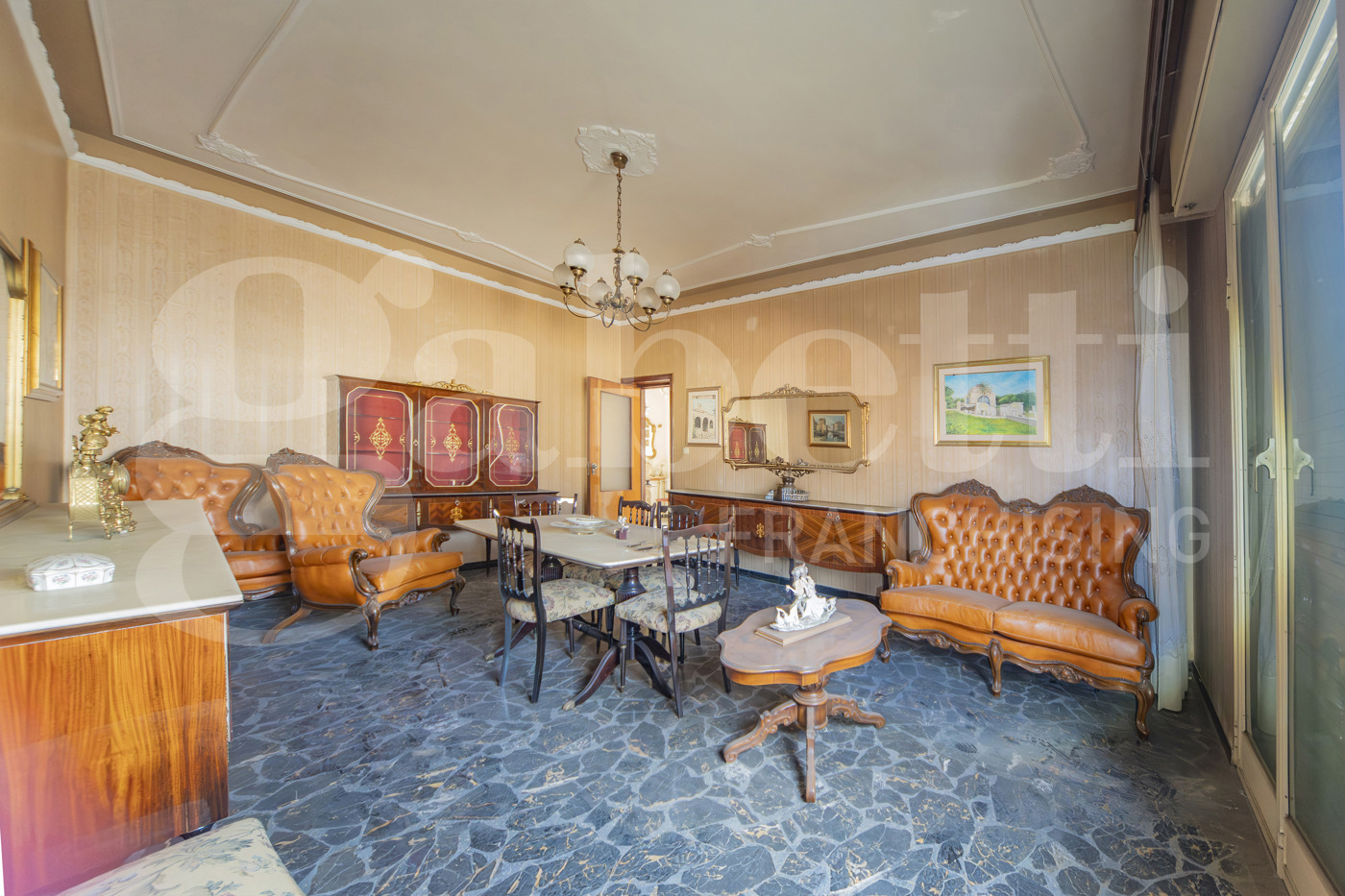 . Lappartamento si sviluppa su una superficie ampia e ben articolata, ed attualmente composto da: ingresso, sette camere di dimensioni comode e regolari, facilmente adattabili a diverse esigenze abitative, cucina abitabile, due bagni finestrati, pratico ripostiglio e due balconi che garantiscono sfogo esterno e buona luminosit agli ambienti.