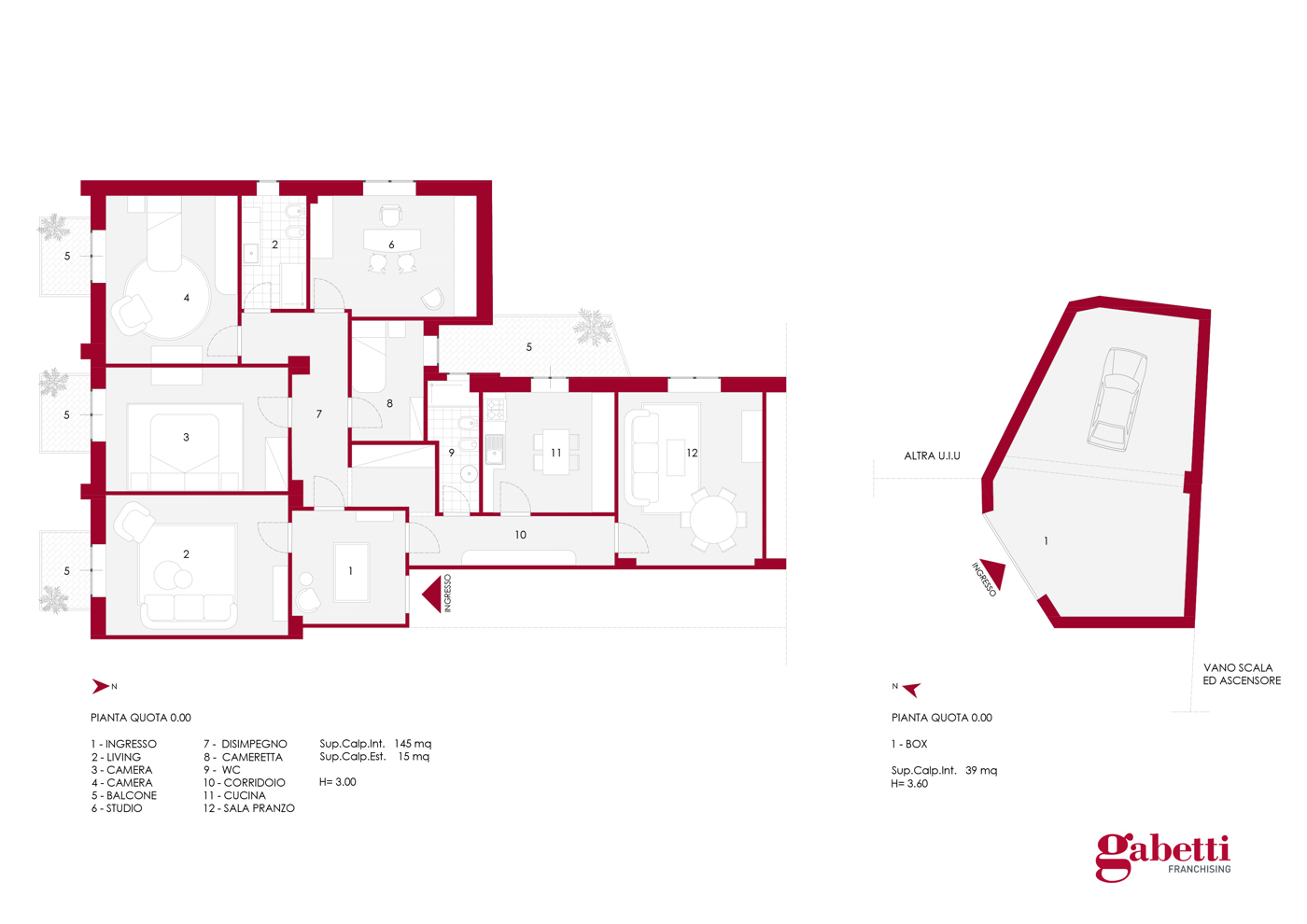 La zona notte comprende tre camere da letto, una cameretta, uno studio e due bagni finestrati.