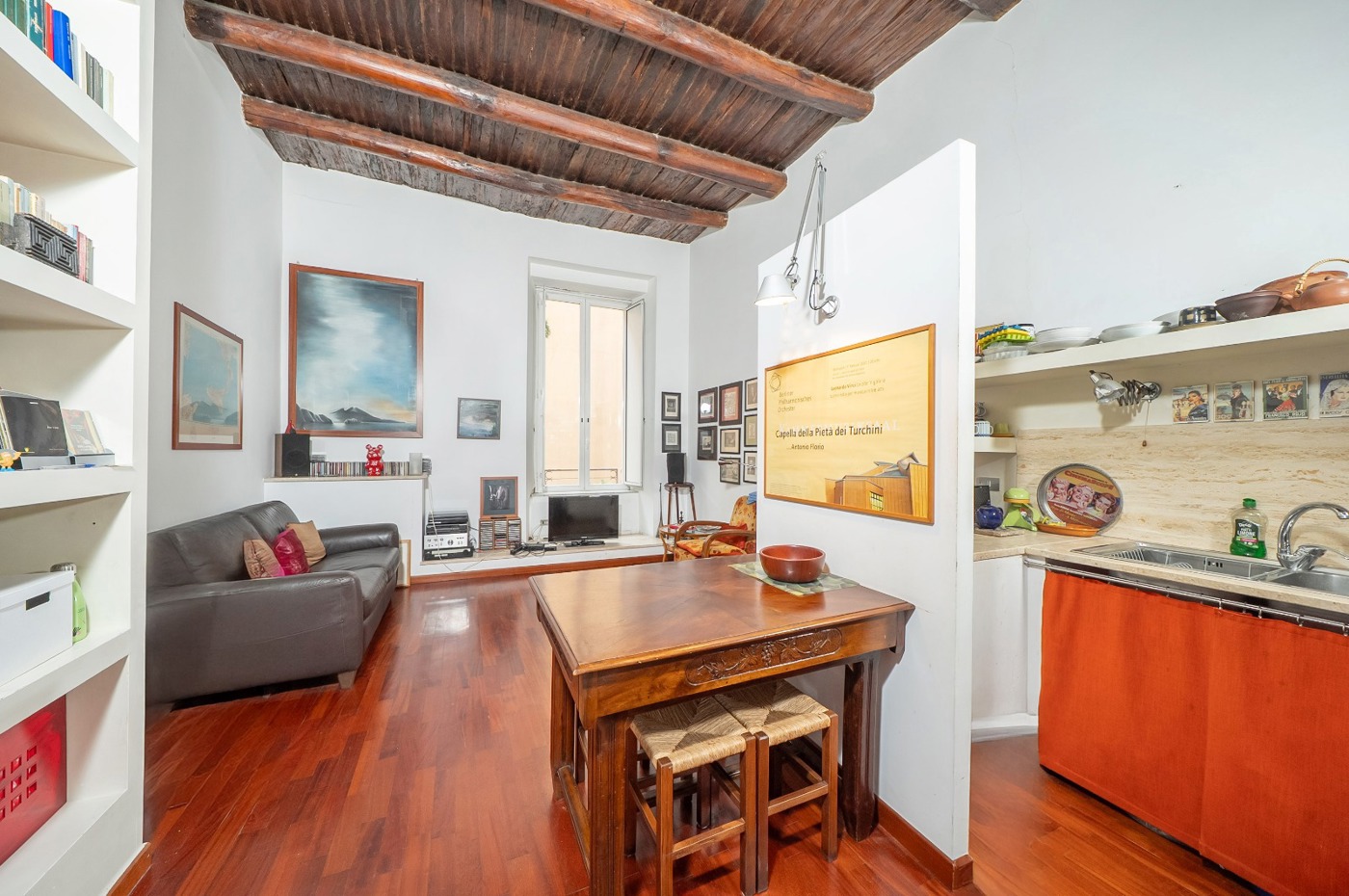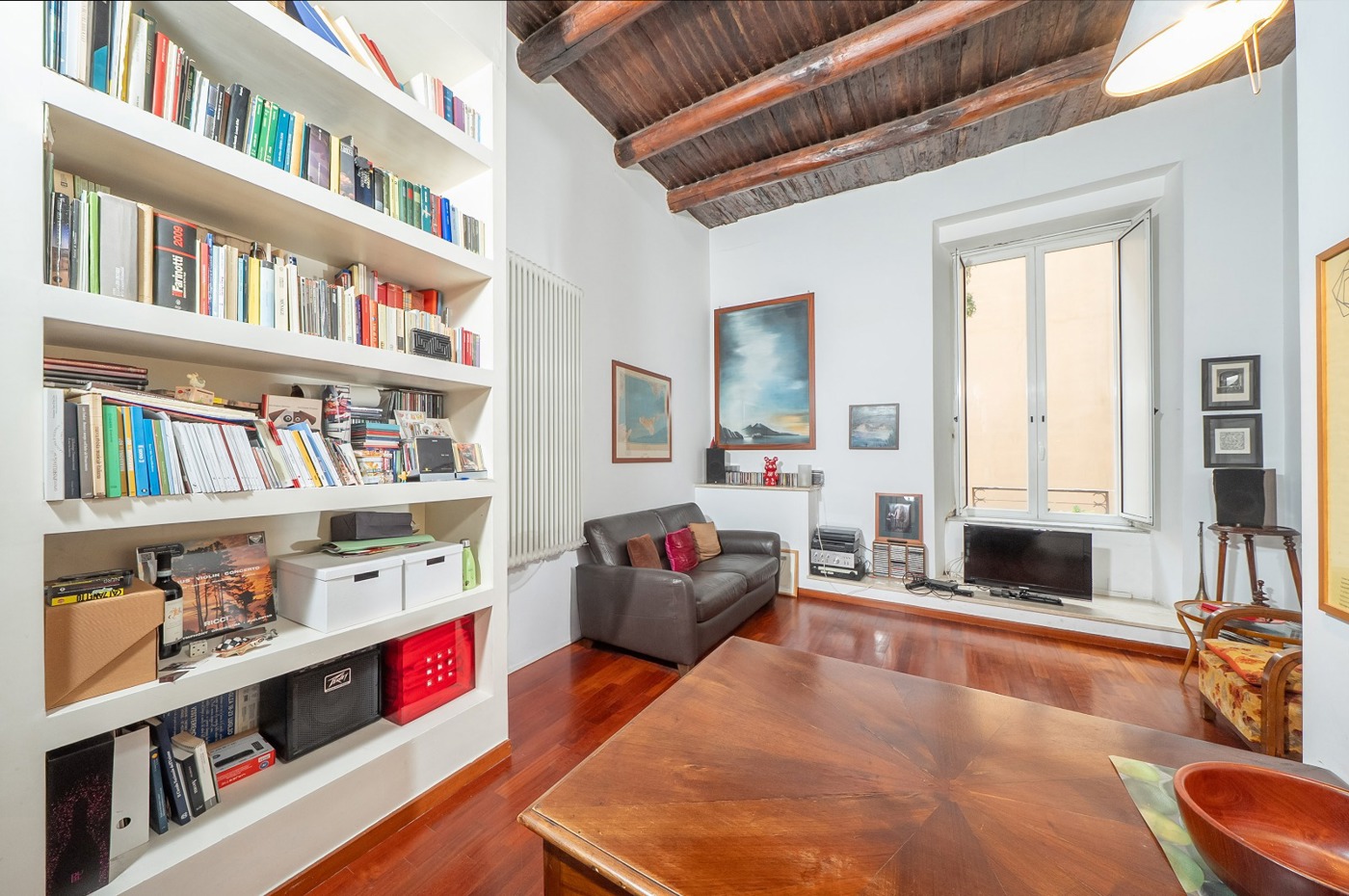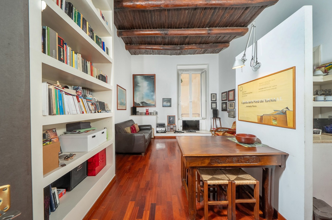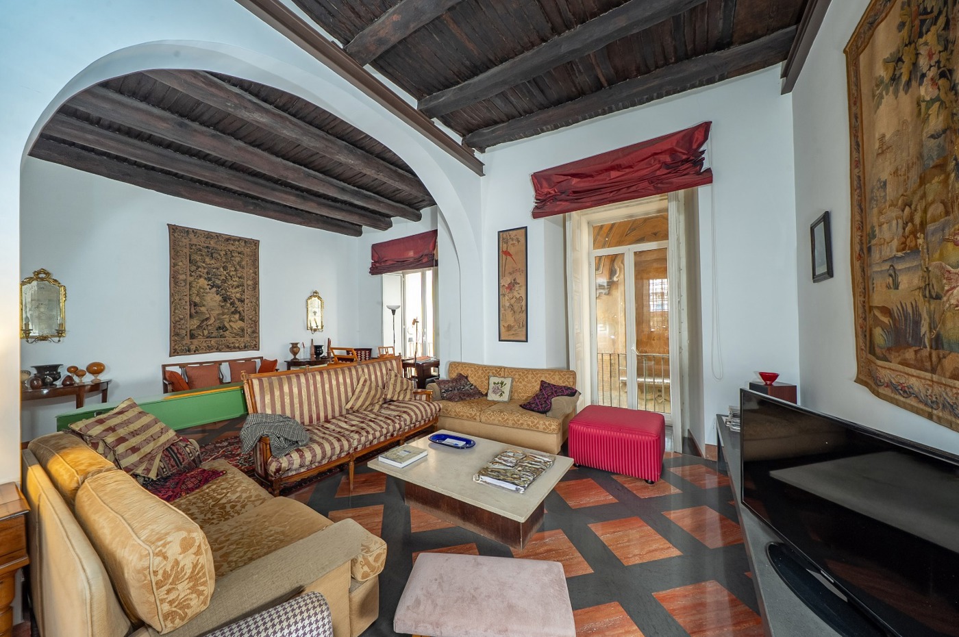 Zona di rappresentanza caratterizzata da un salone doppio con due balconcini riservati e luminosi, dai quali si gode una suggestiva vista sul campanile del Complesso Monumentale di San Gregorio Armeno, elemento architettonico che collega chiesa e monastero e che conferisce unicit prospettica allimmobile.