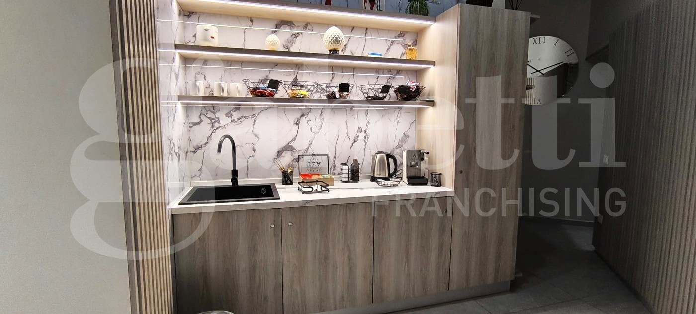L'ingresso della struttura si apre in una zona comune accessoriata.