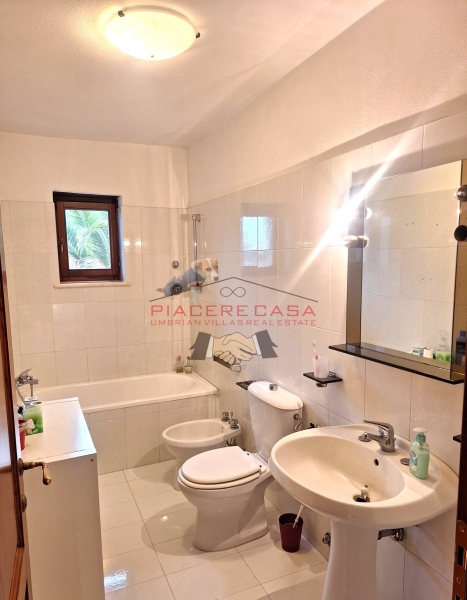 Labitazione si presenta in ottime condizioni ed è caratterizzata da elementi tipici della tradizione umbra, come pavimenti in cotto, soffitti con travi in legno e pianelle e dettagli in pietra.
