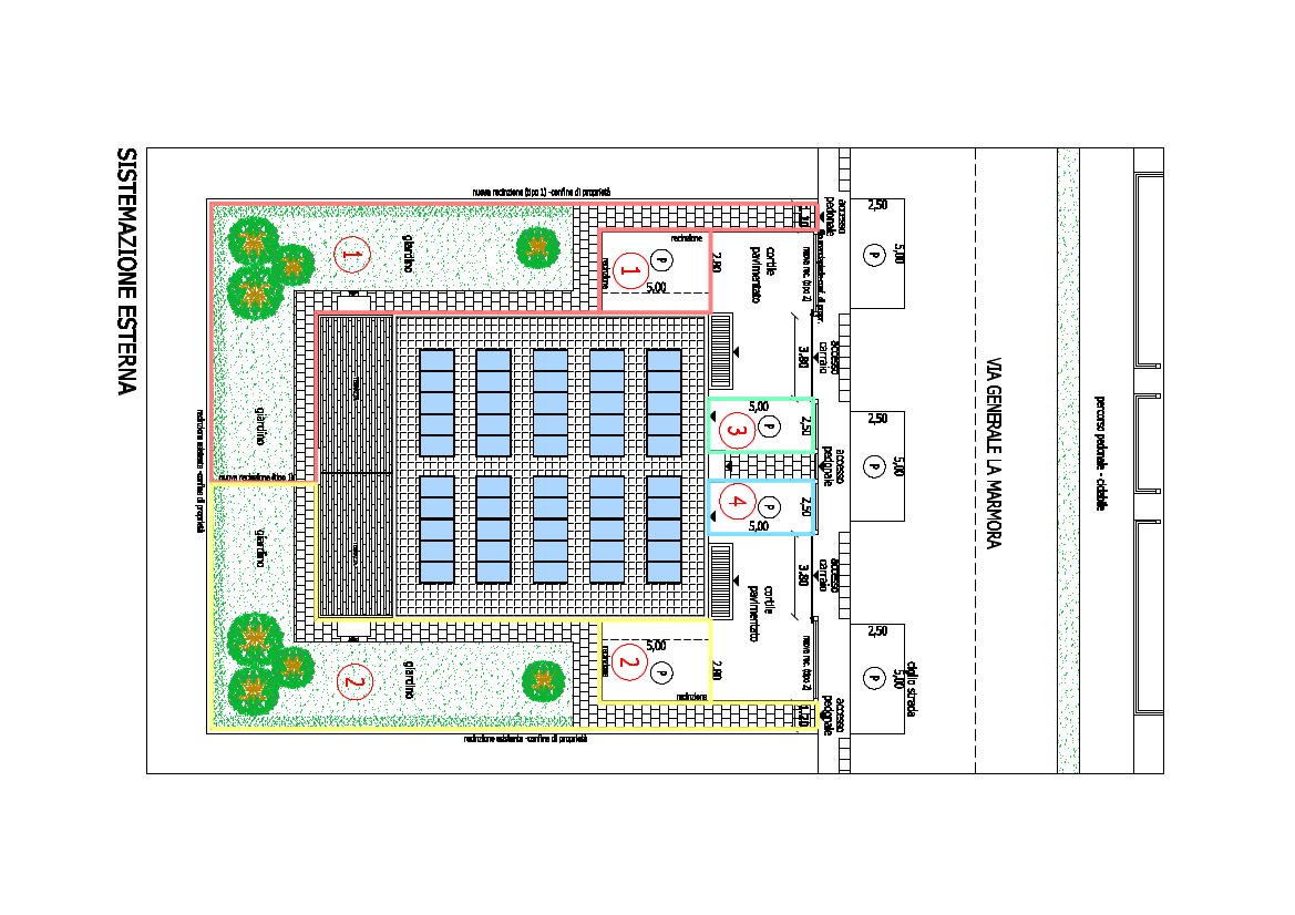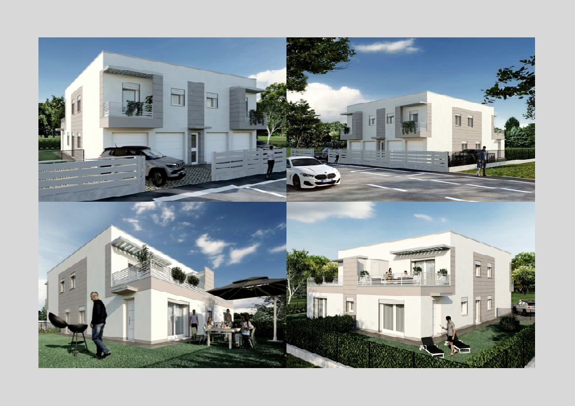 L'intero lotto sarà completamente recintato, con la realizzazione di cancelli carrabili e pedonali per garantire sicurezza e praticità. È previsto un cancello pedonale comune per le unità del primo piano, un cancello pedonale esclusivo per le unità al piano terra e due ingressi carrabili dedicati a ciascuna proprietà. Questa soluzione abitativa è pensata per offrire il massimo del comfort, della funzionalità e della privacy in un contesto moderno e ben organizzato.