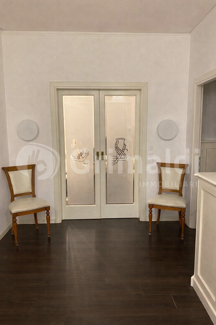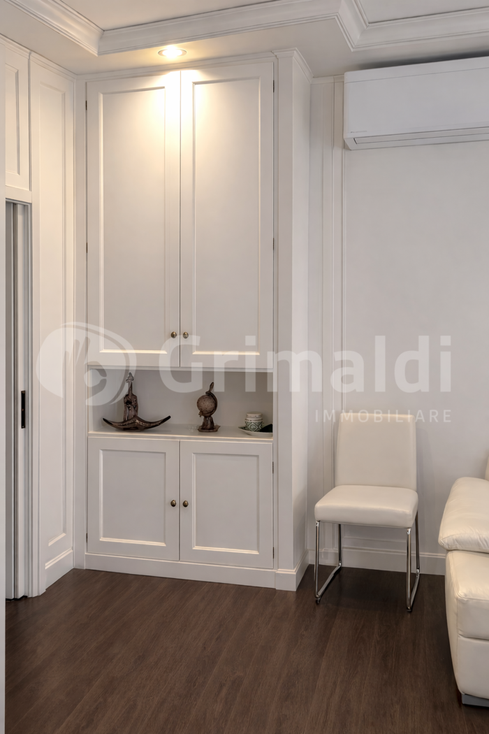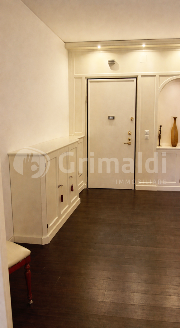 Lingresso introduce a una residenza di rappresentanza, dove il magnifico salone, impreziosito dallaccesso a un delizioso terrazzino, regala unatmosfera esclusiva e accogliente.