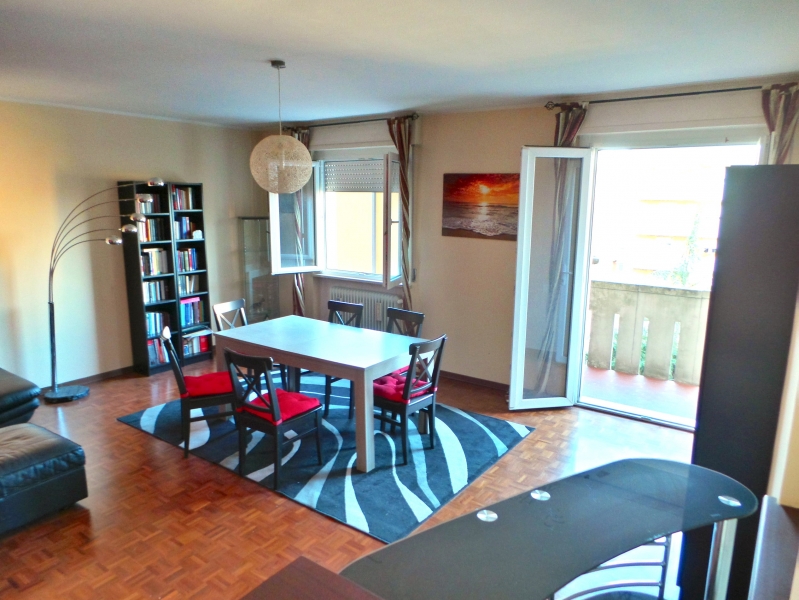 Spazioso appartamento con tre camere, due bagni, terrazza, cantina e box auto. L'immobile si trova al quarto piano con ascensore ed è così composto: atrio d'ingresso, luminoso soggiorno con annessa sala da pranzo, cucina separata vivibile.