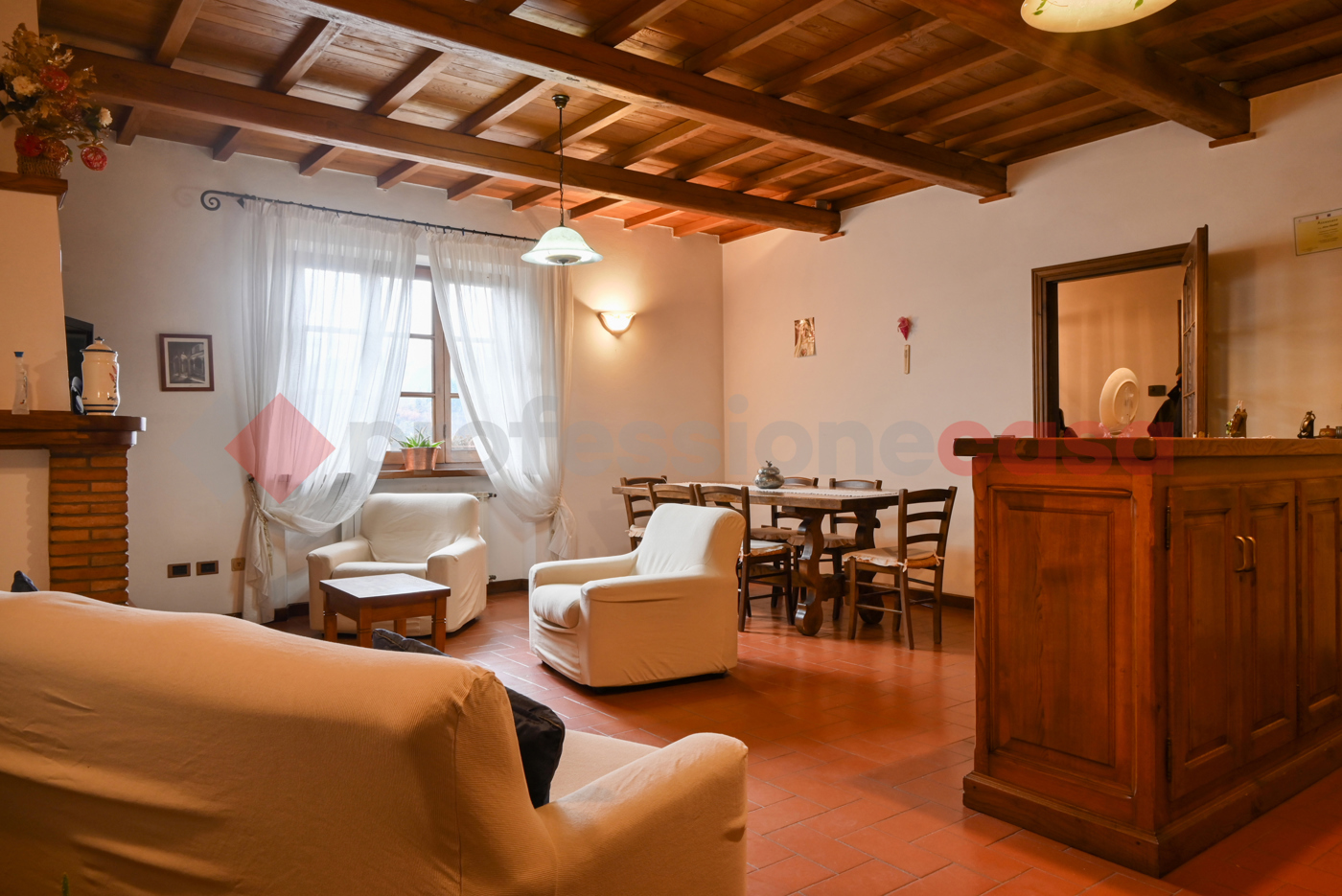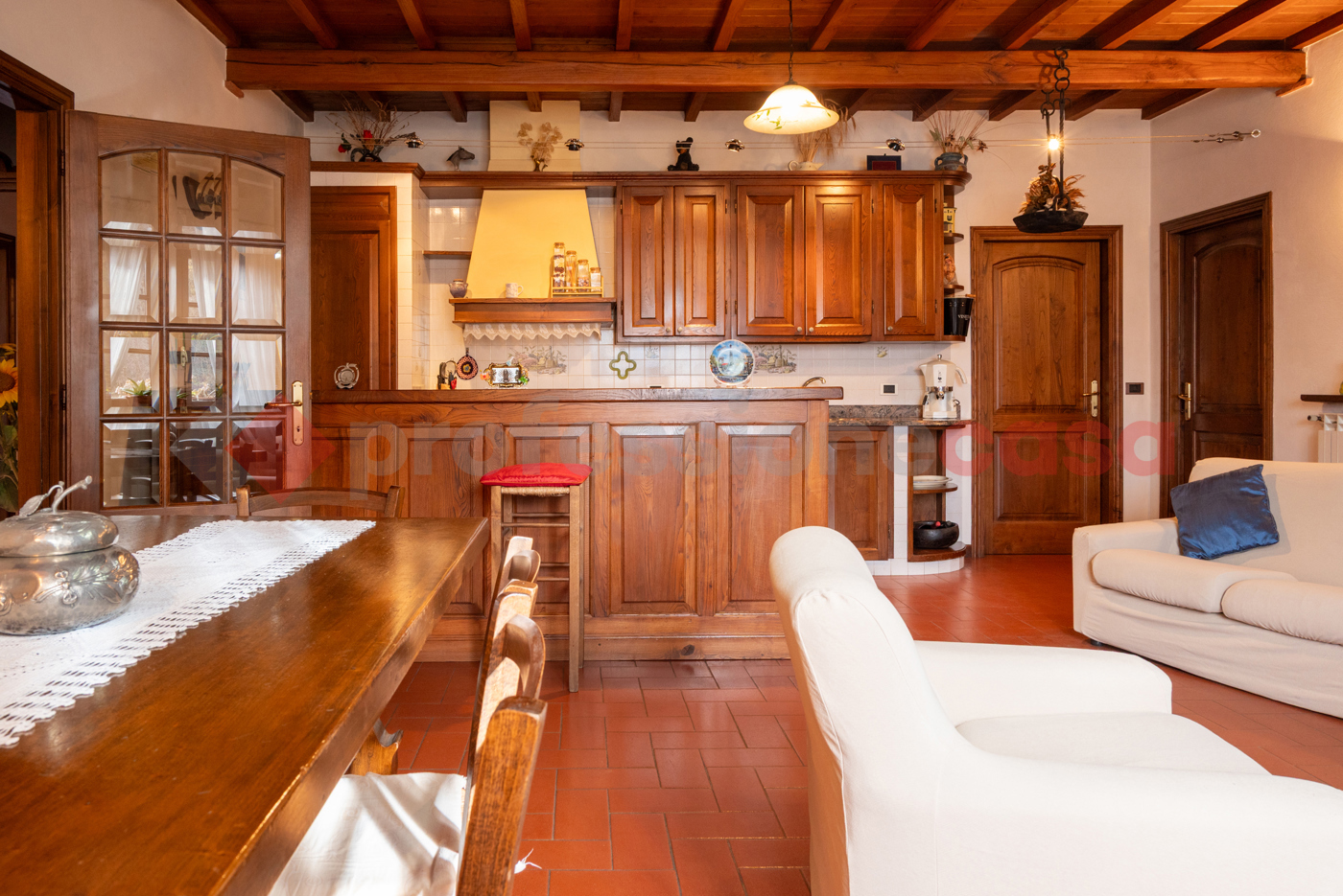 Si compone di 4 camere da letto, un bagno, cucina a vista e un soggiorno living reso caldo e accogliente da un termo-camino.