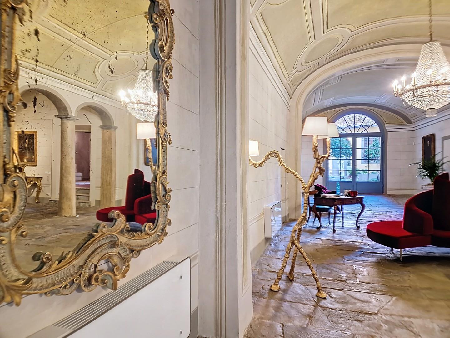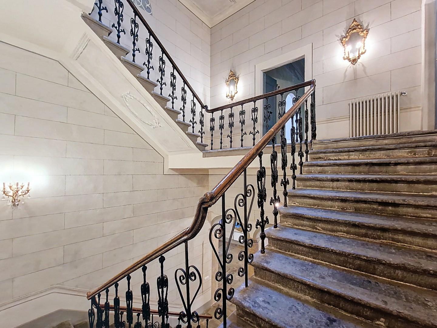 La proprietà riguarda il piano nobile del palazzo per complessivi 450mq e si sviluppa al piano primo di quattro livelli collegati da una scenografica scala in pietra, arricchita da ferro battuto e legno lavorato, illuminata dallalto da una grande apertura che diffonde luce naturale.
