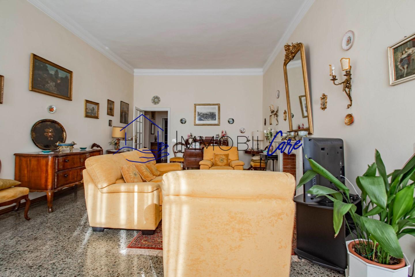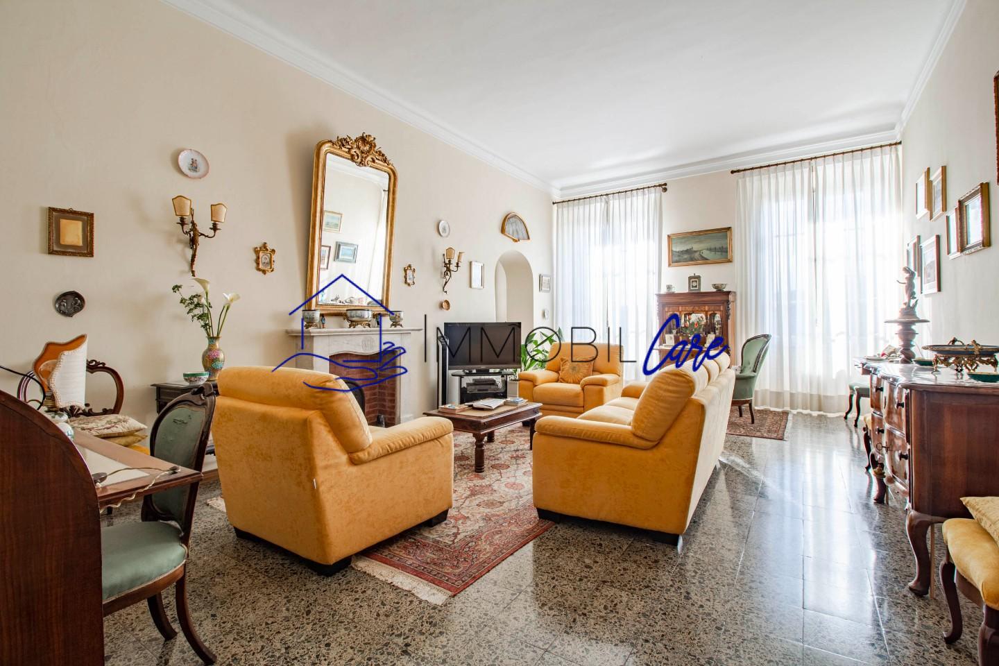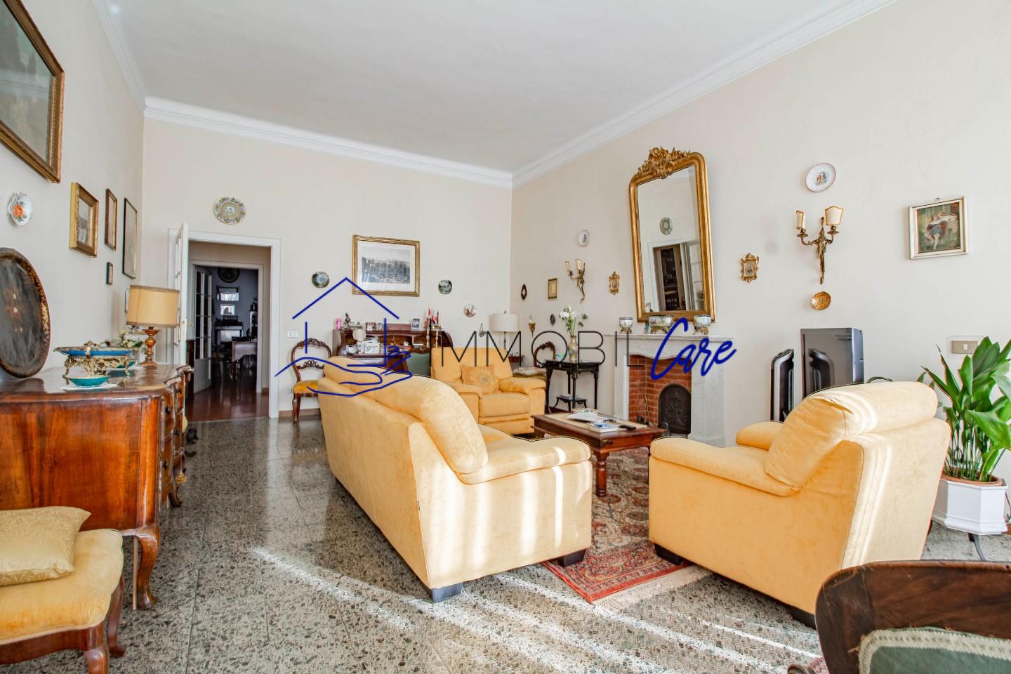 Nel disimpegno giorno troviamo la sala da pranzo comunicante con il salone doppio di circa 35 mq rifinito di camino e doppio affaccio sui Lungarni.