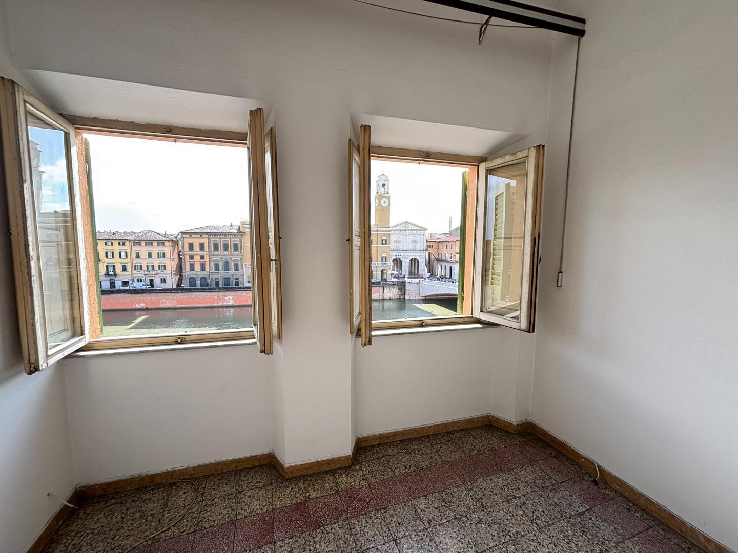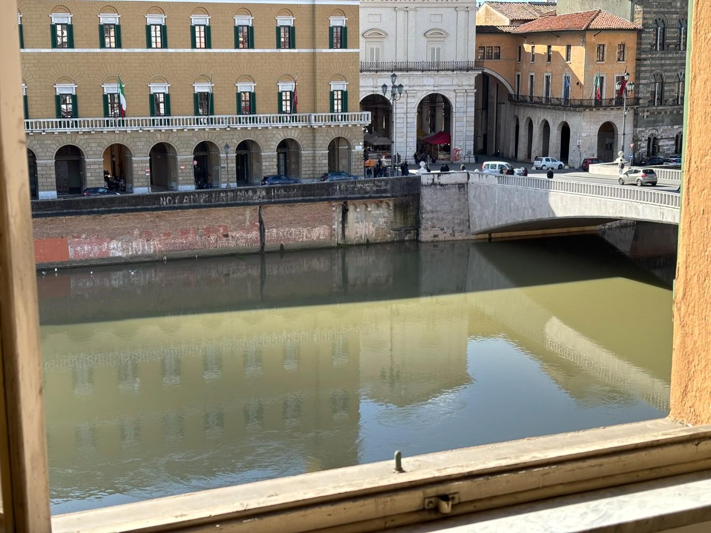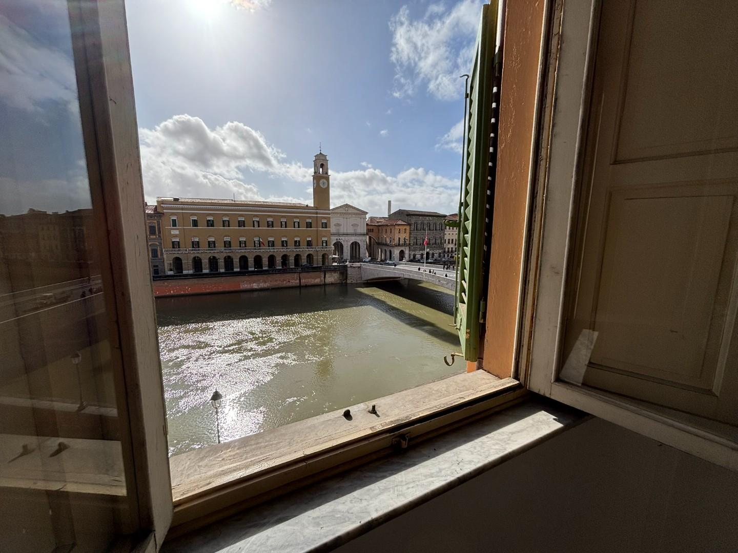 ***.*******.** 4297 - Splendida vista sui Lungarni e sul Ponte di Mezzo: Al terzo ed ultimo piano di piccolo fabbricato su Lungarno Mediceo, appartamento composto da ingresso, soggiorno, cucina abitabile, ripostiglio, due bagni, studio, tre camere, oltre ad un'ampia soffitta dove è possibile ricavare un ambiente indipendente con bagno, studio e camera.