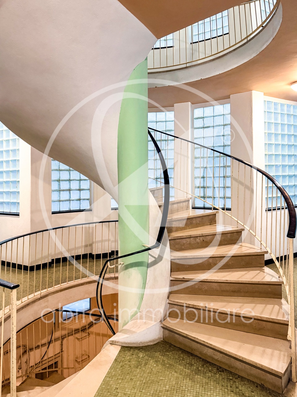 L'immobile si trova al secondo piano di un caratteristico stabile in stile anni '50, caratterizzato da una scenografica scala elicoidale con pareti in vetrocemento, che dona charme e grande luminosità alle parti comuni.