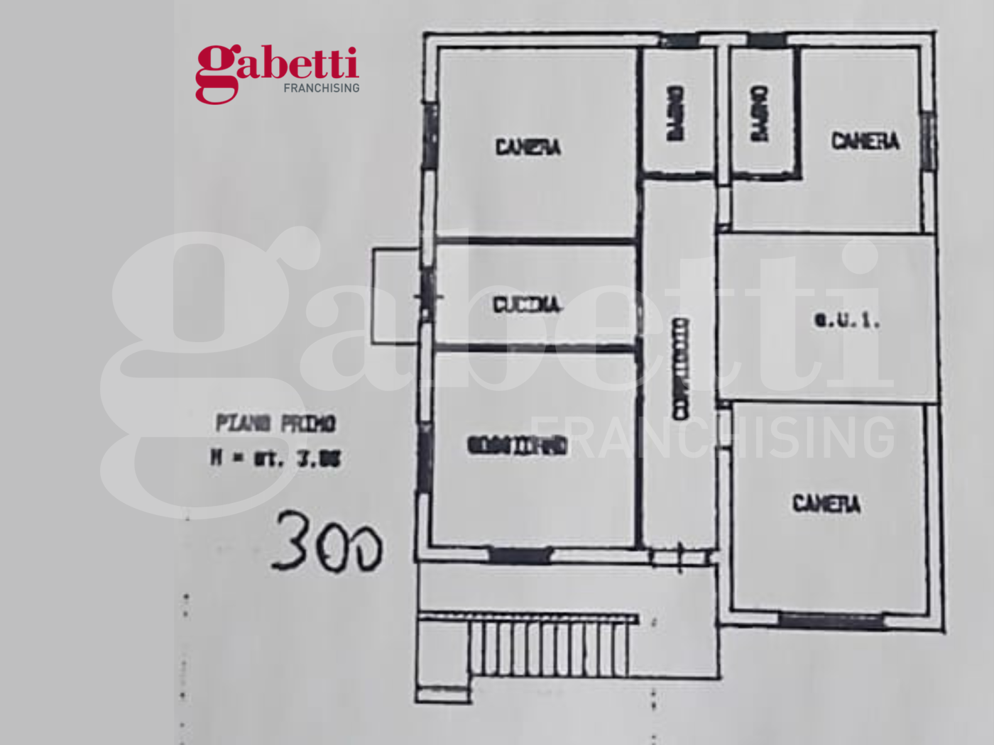 L'immobile si trova al primo piano ed occupa l'intero piano, composto da ampia sala di oltre 30 mq., cucina separata, camera matrimoniale, camera doppia, camera singola, 2 bagni e un balcone, questo appartamento dispone inoltre di un garage al piano terra.