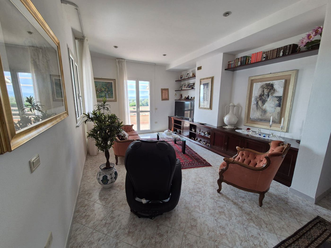 L'immobile composto da un grande appartamento al piano terra con cucina abitabile, soggiorno e terrazza di 30 mq, quattro camere di cui una matrimoniale con terrazza , due servizi entrambi con finestra.