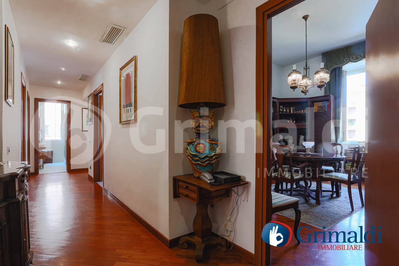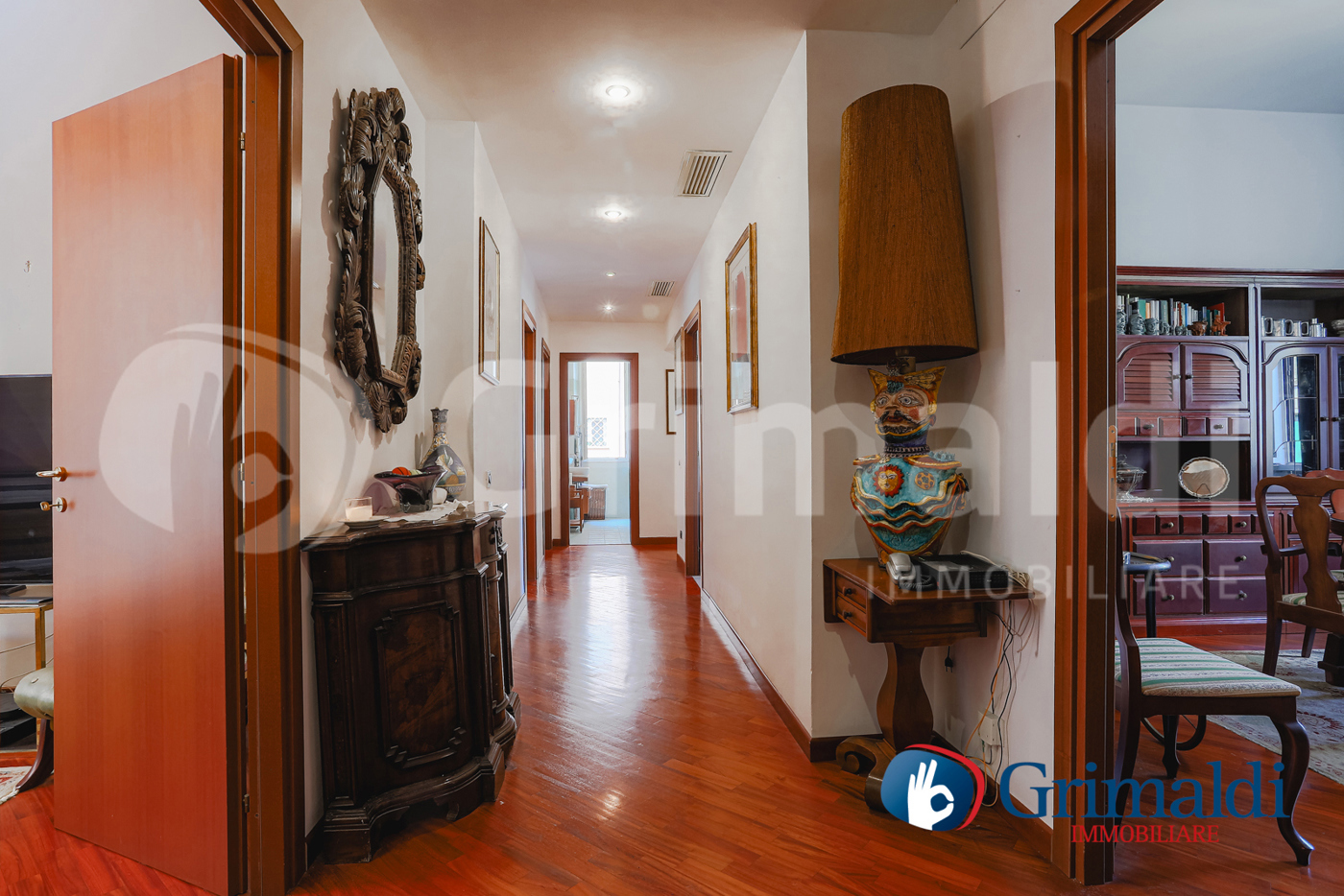 Appena si entra, si accolti da un lungo corridoio che divide l'appartamento a met, dal quale si diramano tutti gli ambienti, creando un eccezionale riscontro di luce e di aria. Procedendo in senso orario, a sinistra troviamo il soggiorno e due camere da letto.