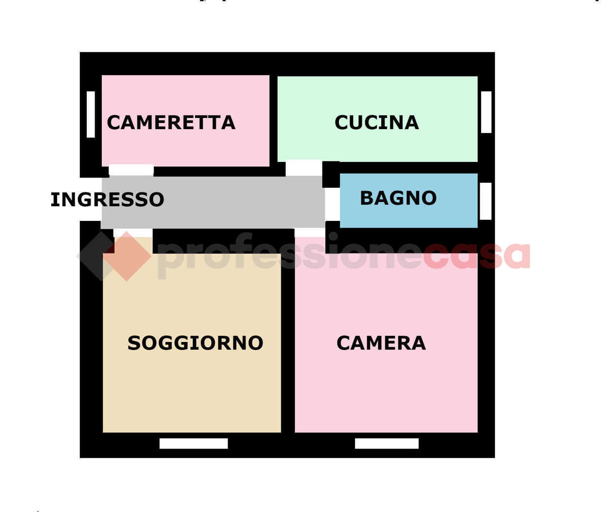 soggiorno, cucina, camera matrimoniale.