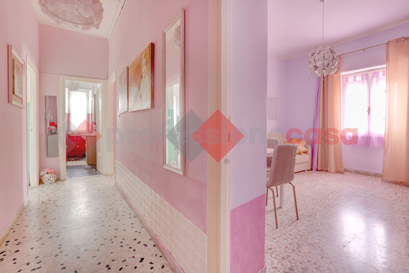 corridoio, cameretta e servizio con vasca.