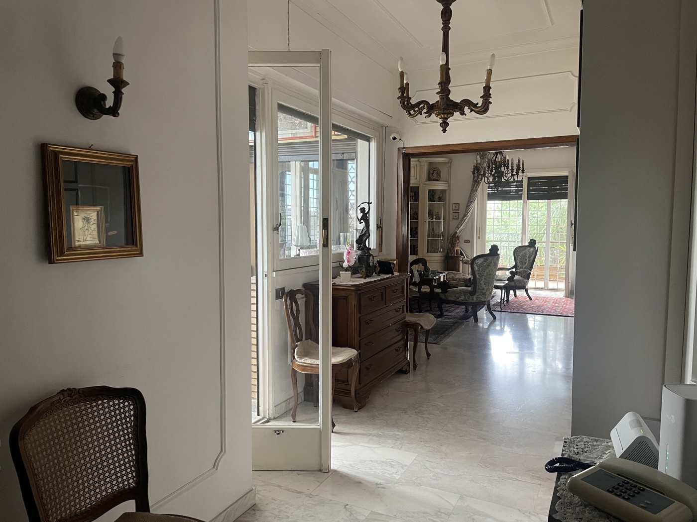 Internamente i pavimenti sono originali in marmo, fatta eccezione per bagni, cucina e verande; gli infissi sono misti in pvc doppio vetro e legno vetro singolo, presentano grate si sicurezza e il terrazzo dotato di tende da sole, riscaldamento centralizzato, sistema di allarme perimetrale e sui serramenti.