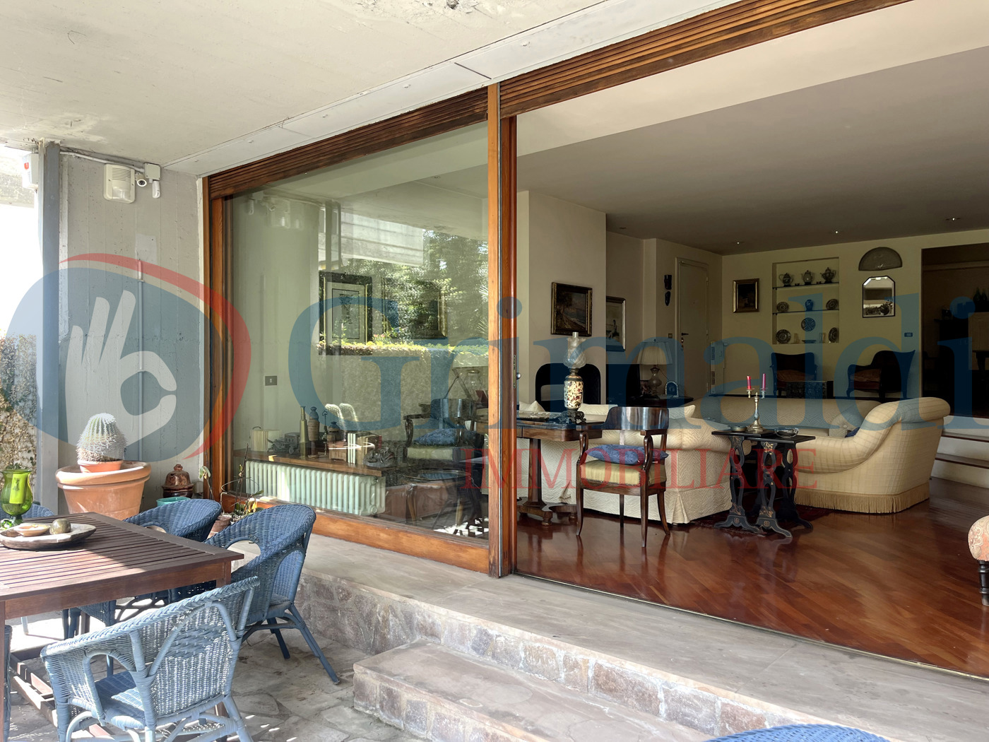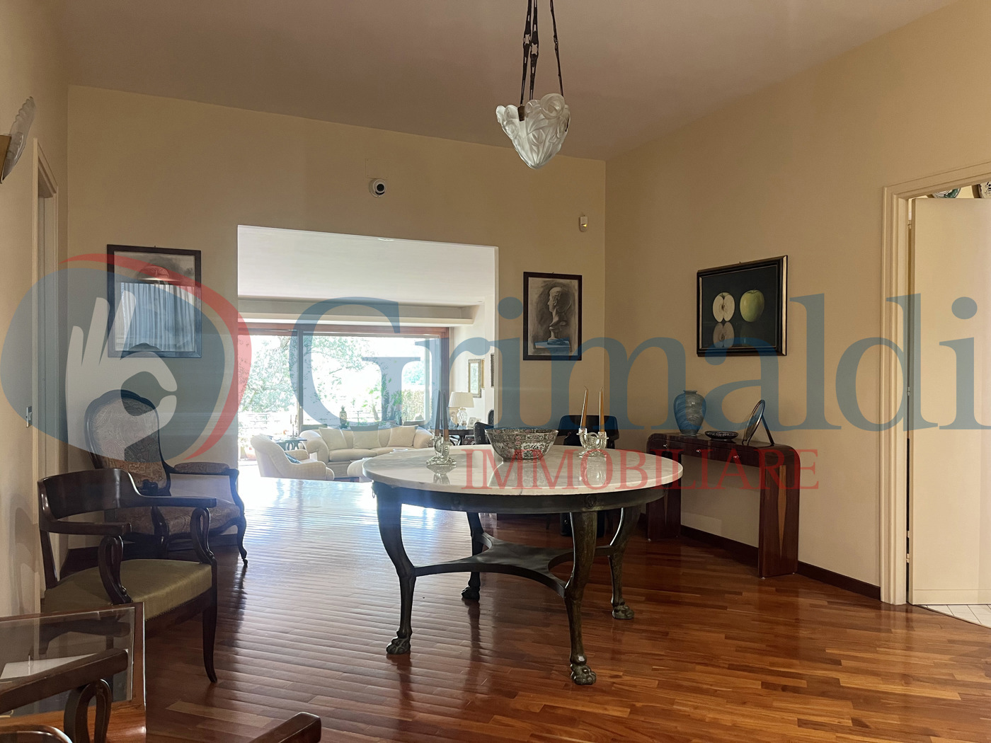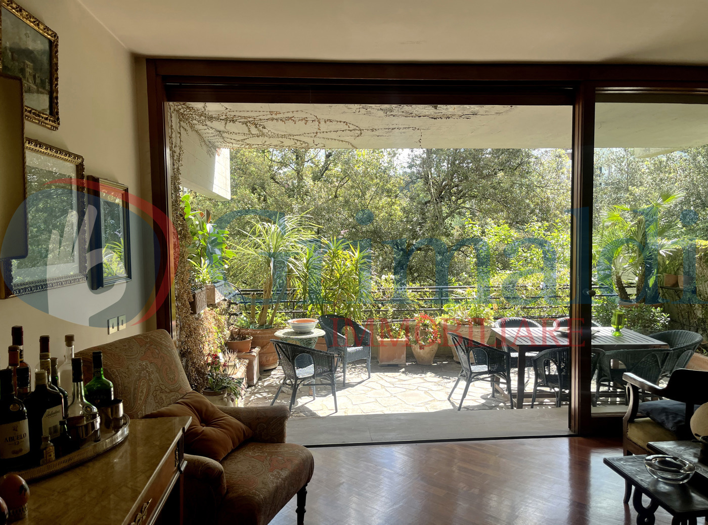 Si presenta in buone condizioni interne ed cos composto: doppio ingresso, ampio soggiorno di rappresentanza con camino ed accesso al primo terrazzo abitabile, sala da pranzo che collega il soggiorno con la cucina accessoriata da un ripostiglio ed un balcone ad uso lavanderia, corridoio che collega due bagni alla camera da letto e allo studio con secondo balcone abitabile, veranda con accesso alla cameretta di servizio e bagno privato.