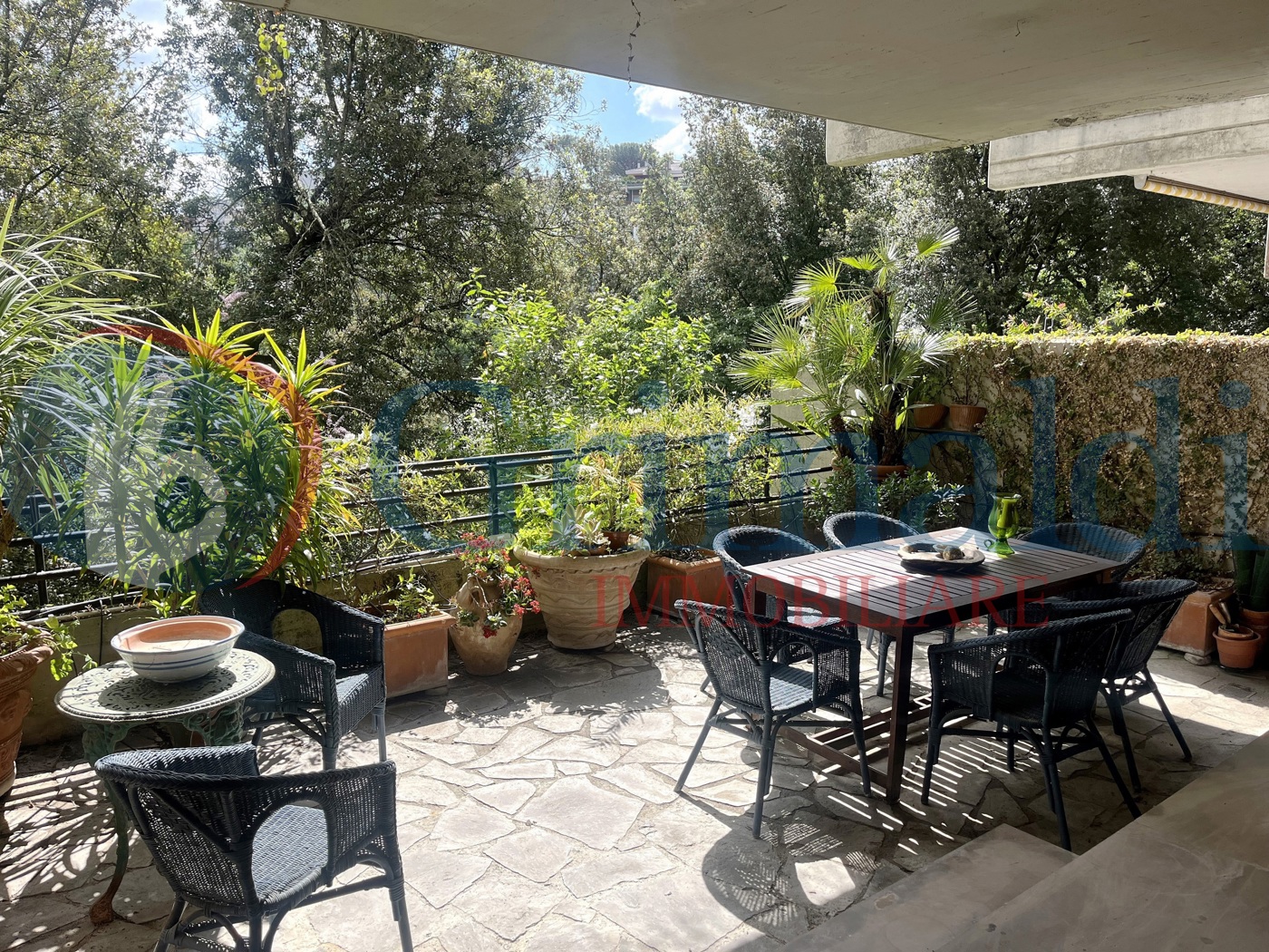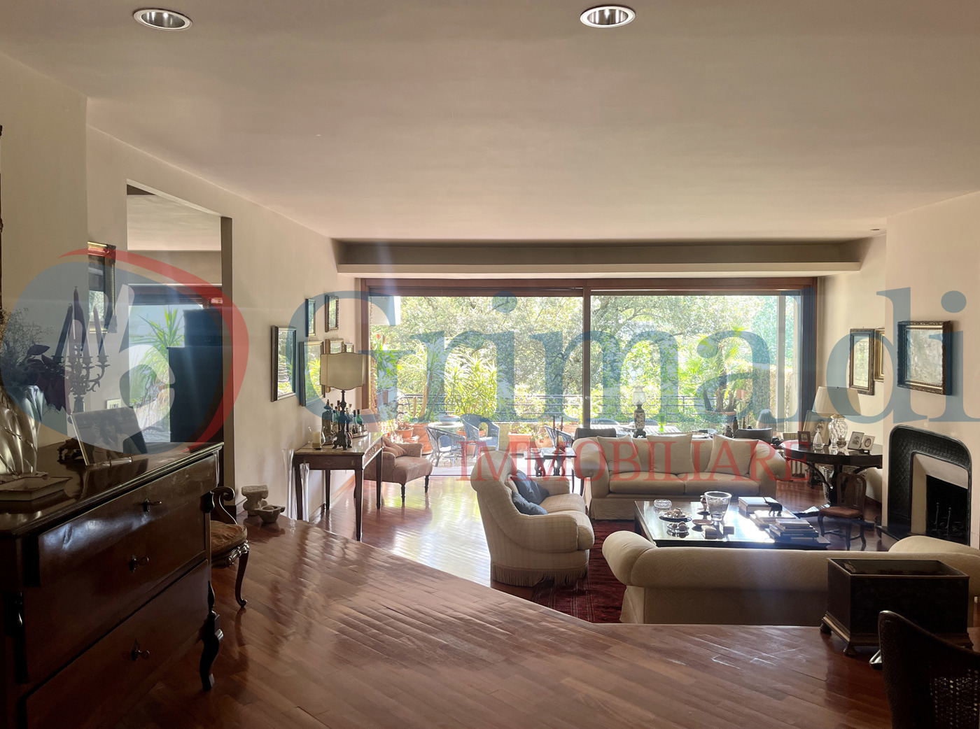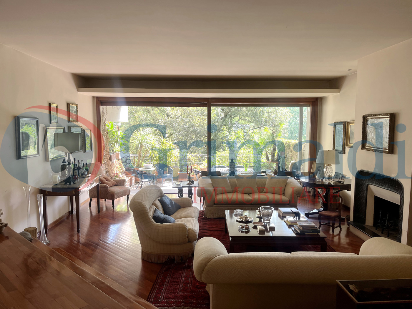 Si presenta in buone condizioni interne ed cos composto: doppio ingresso, ampio soggiorno di rappresentanza con camino ed accesso al primo terrazzo abitabile, sala da pranzo che collega il soggiorno con la cucina accessoriata da un ripostiglio ed un balcone ad uso lavanderia, corridoio che collega due bagni alla camera da letto e allo studio con secondo balcone abitabile, veranda con accesso alla cameretta di servizio e bagno privato.