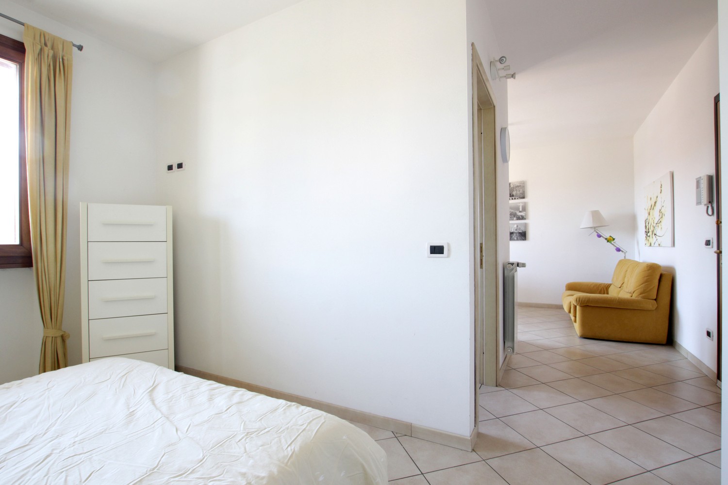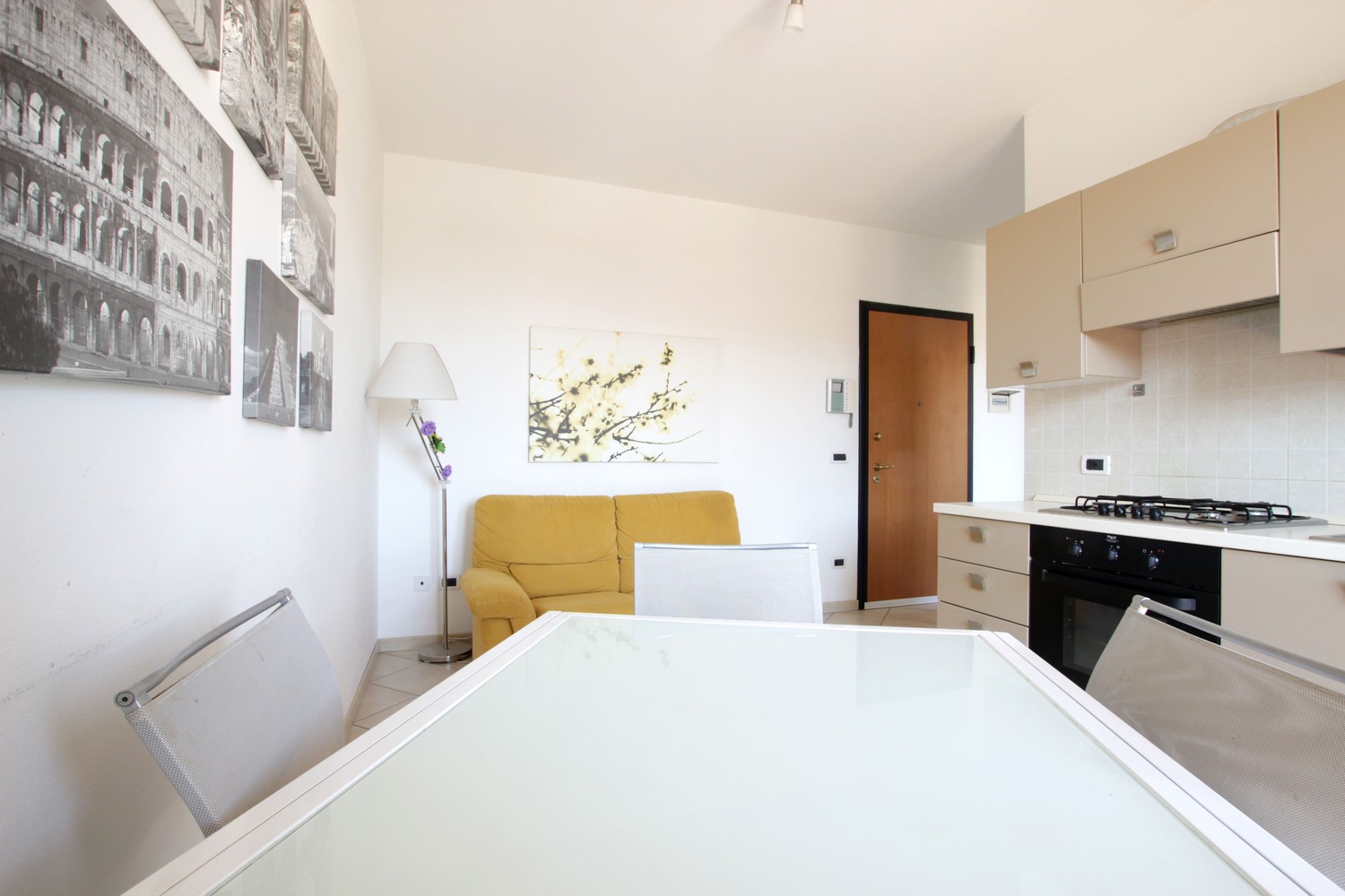 Secondo ed ultimo piano di mq 40 accatastato a monolocale ma ben diviso come un bilocale con soggiorno ed angolo cottura, bagno finestrato, camera matrimoniale e bel terrazzo di 10 mq. Dispone di una cantina di 5 mq e di un garage di 18 mq. Utenze autonome.