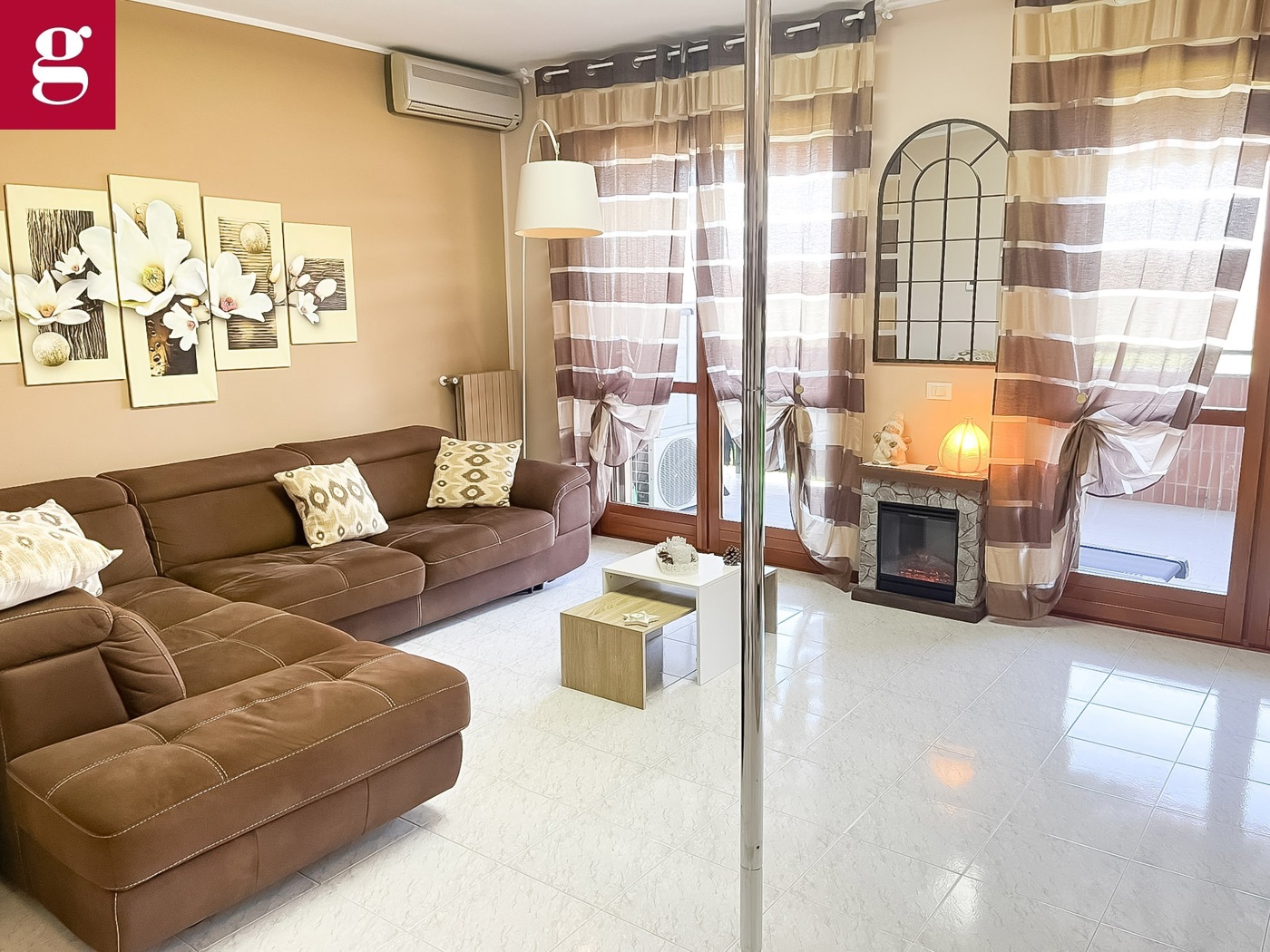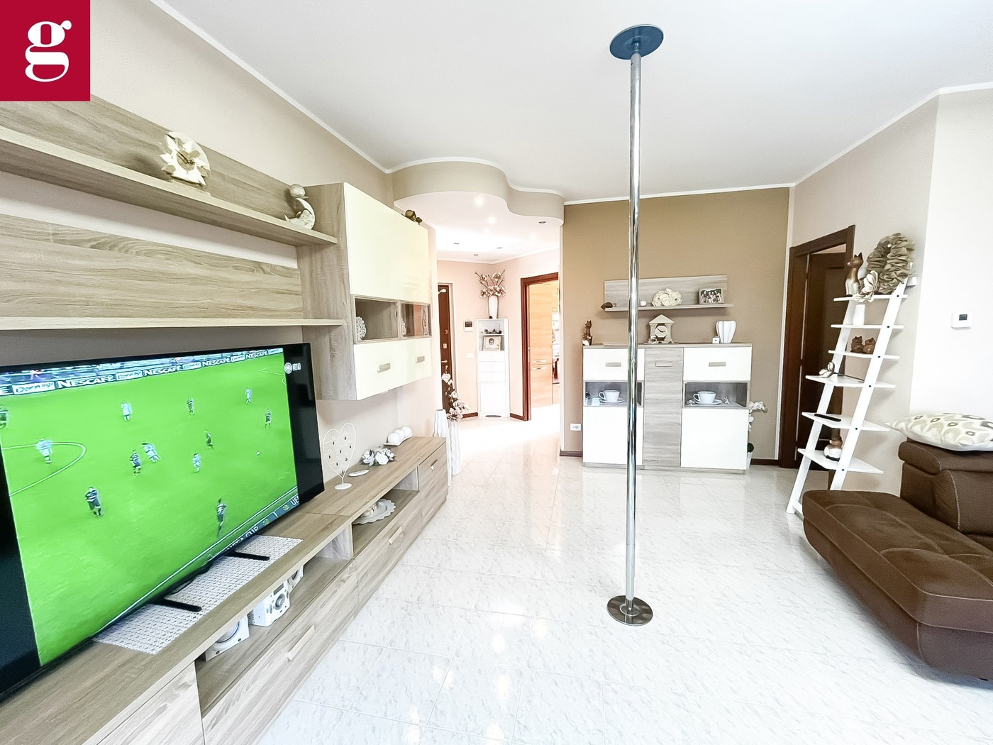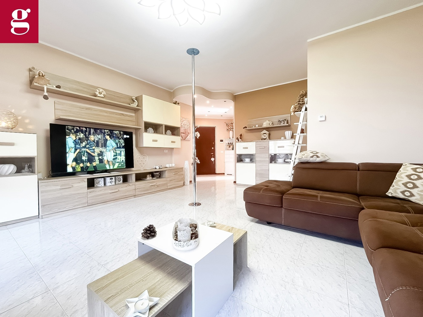 Lingresso apre su un ampio e raffinato soggiorno, uno spazio accogliente e ben distribuito, ideale sia per momenti di relax che per ricevere ospiti.