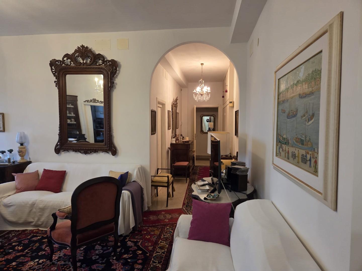 L'immobile di 120 mq circa è composto da ingresso, ampio salone con balcone, cucina abitabile, studio, 2 camere singole, cucinotto e bagno, disimpegno, ripostiglio, camera matrimoniale e altro bagno.