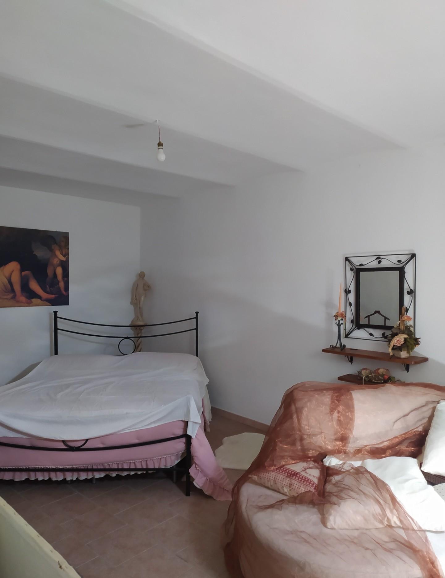 Limmobile è situato al piano terra, primo e secondo (T-1-2) e si compone di: al piano terra da un ampio locale ad uso sgombero e una cantina, scala dingresso interna ad unica rampa, piccolo porticato e ripostiglio posti sotto la scala; al piano primo (parte abitata) da cucina, ampio soggiorno, servizio igienico, due camere e balcone; al piano secondo da tre camere, locale di sgombero, disimpegno, servizio igienico e balconi.