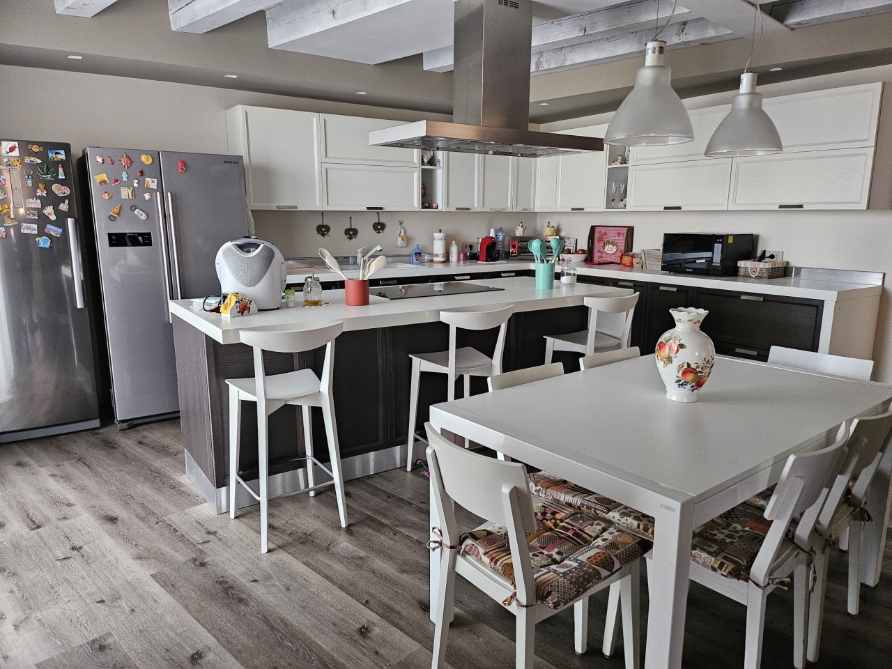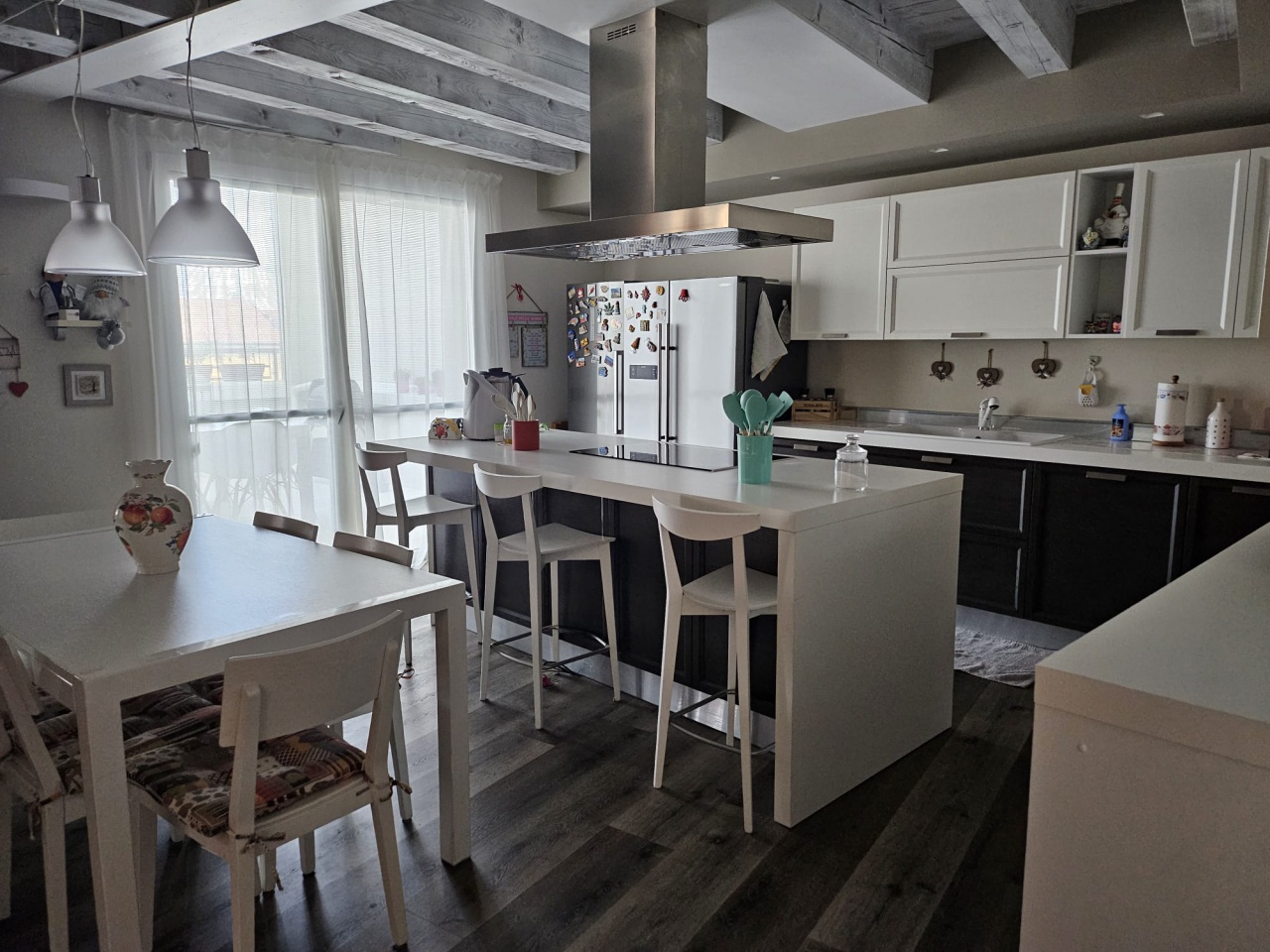 Accanto alla cucina, troviamo un soggiorno luminoso e accogliente, con ampie finestre che permettono alla luce naturale di inondare l'ambiente.