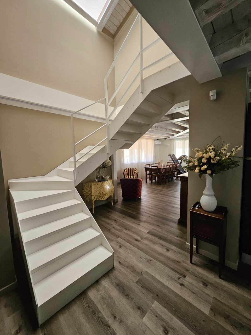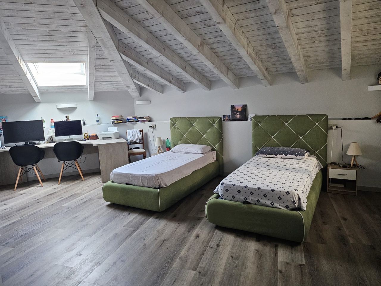 Piano Quarto Mansardato: al piano superiore, mansardato, troviamo tre camere matrimoniali, tutte di generose dimensioni e ben illuminate, ognuna con spazio sufficiente per arredamenti funzionali e comodi.