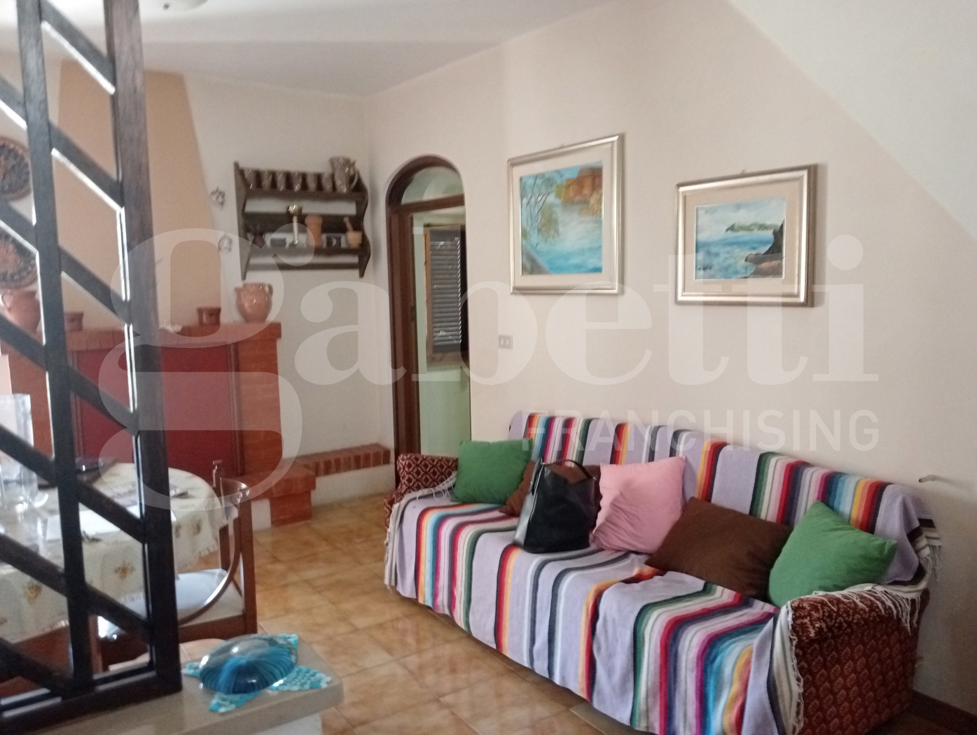 Con una superficie di 155 mq, questa propriet offre al PT saloncino da cui parte una scala che porta ad una parte di camere ,soggiorno, cucina dove si trova un'altra scala che coduce ad altri 2 piani.