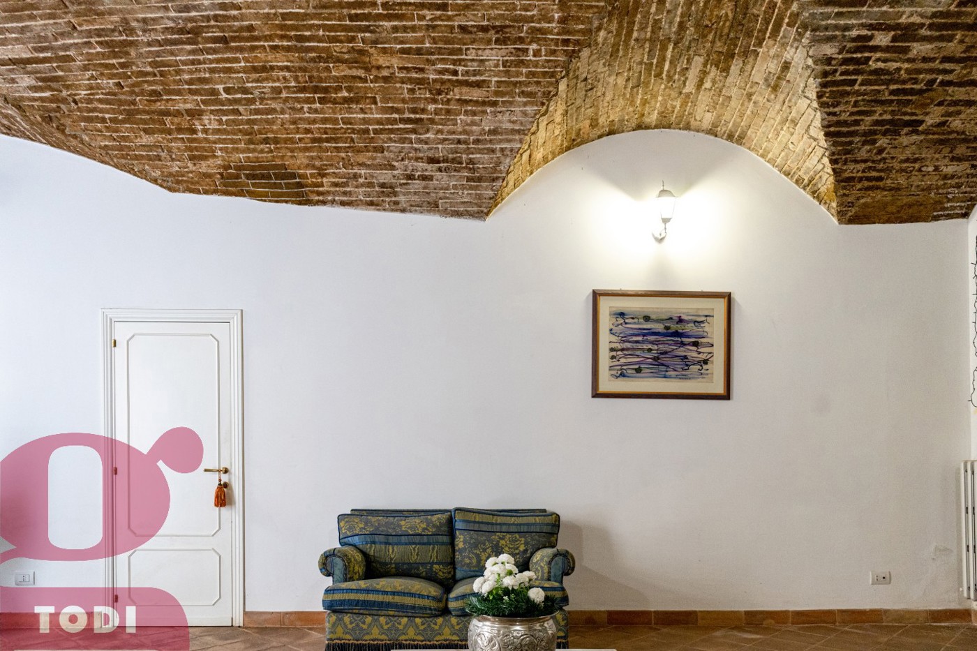 Limmobile valorizzato da una sapiente combinazione di design moderno e finiture di pregio con materiali tipici, come il quasi onnipresente pavimento in cotto ed il parquet a spina italiana.