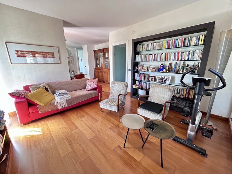 I pavimenti in pregiato tek e la splendida esposizione regalano ulteriore pregio e luminosità a tutti gli spazi.