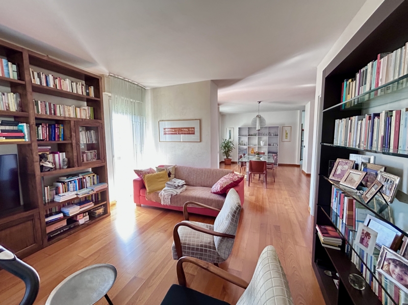 I pavimenti in pregiato tek e la splendida esposizione regalano ulteriore pregio e luminosità a tutti gli spazi.