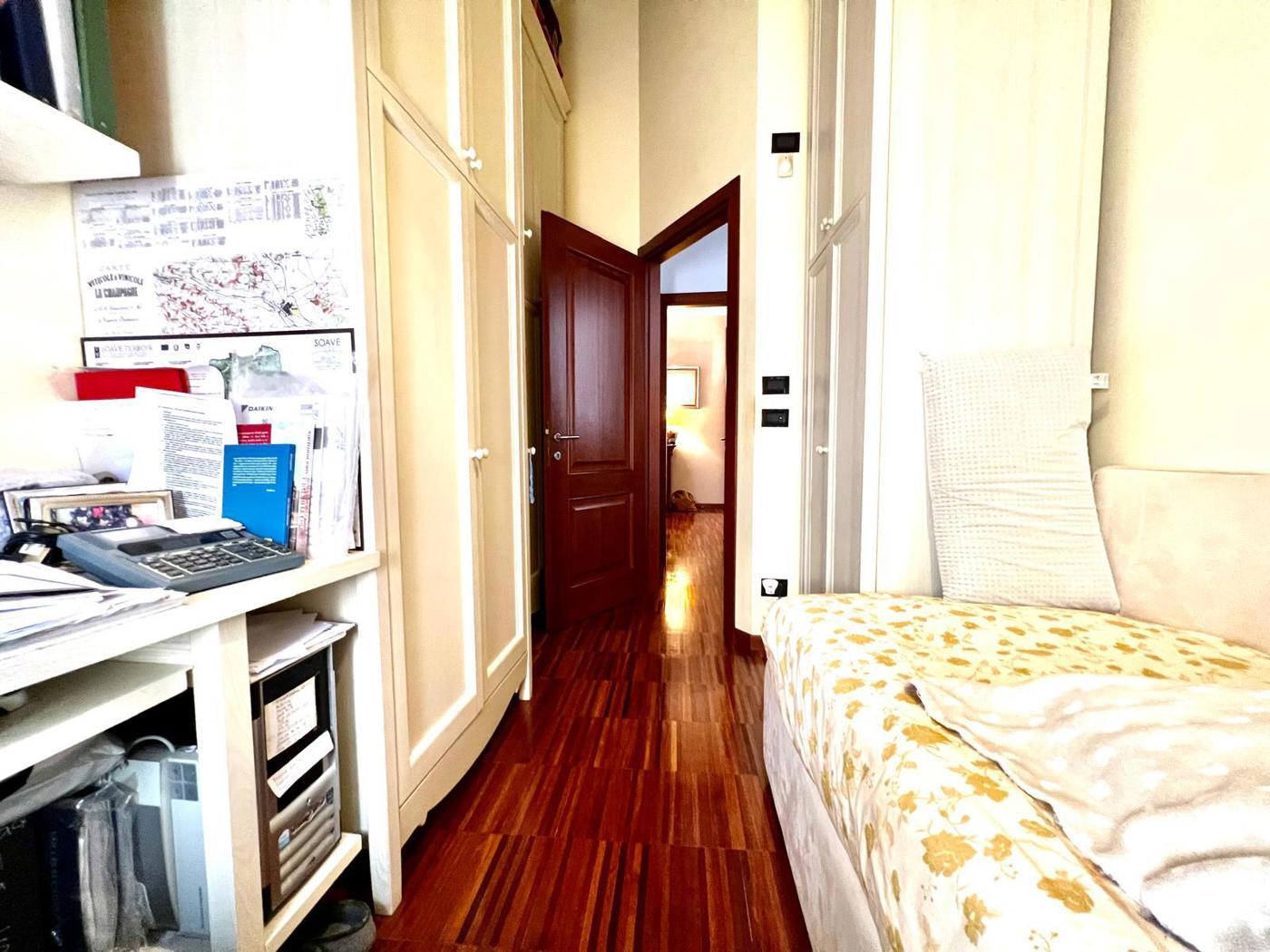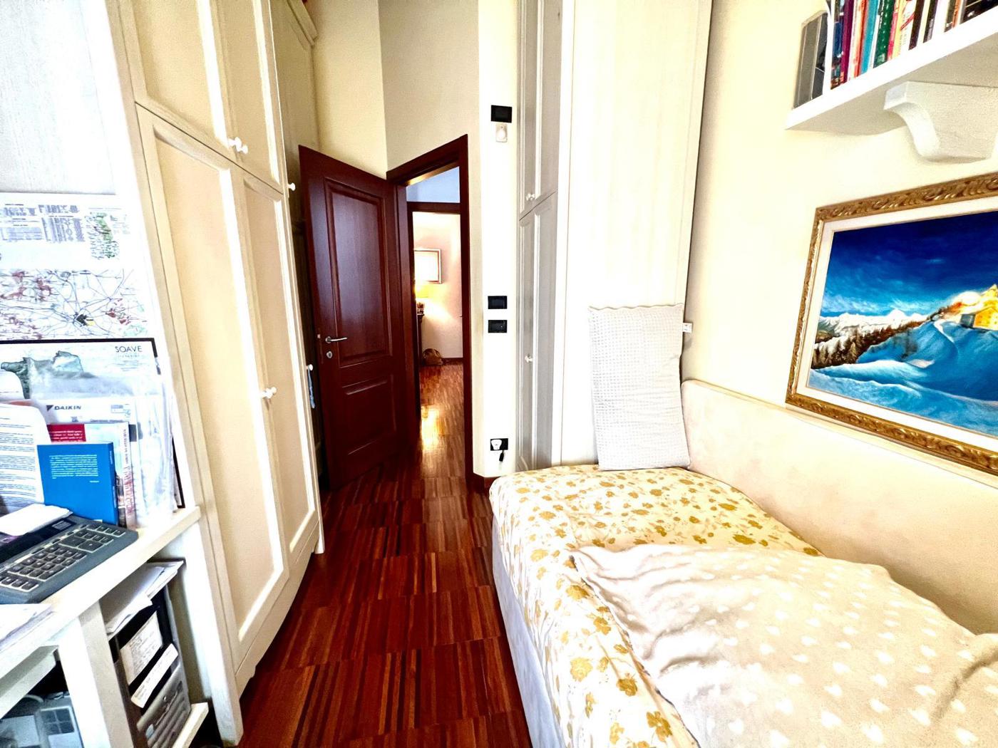 Cucina separata, una camera matrimoniale, due camere singole ideali come stanze ospiti o studio, oltre a due bagni pratici e ben distribuiti.