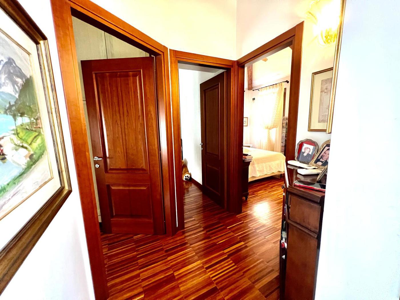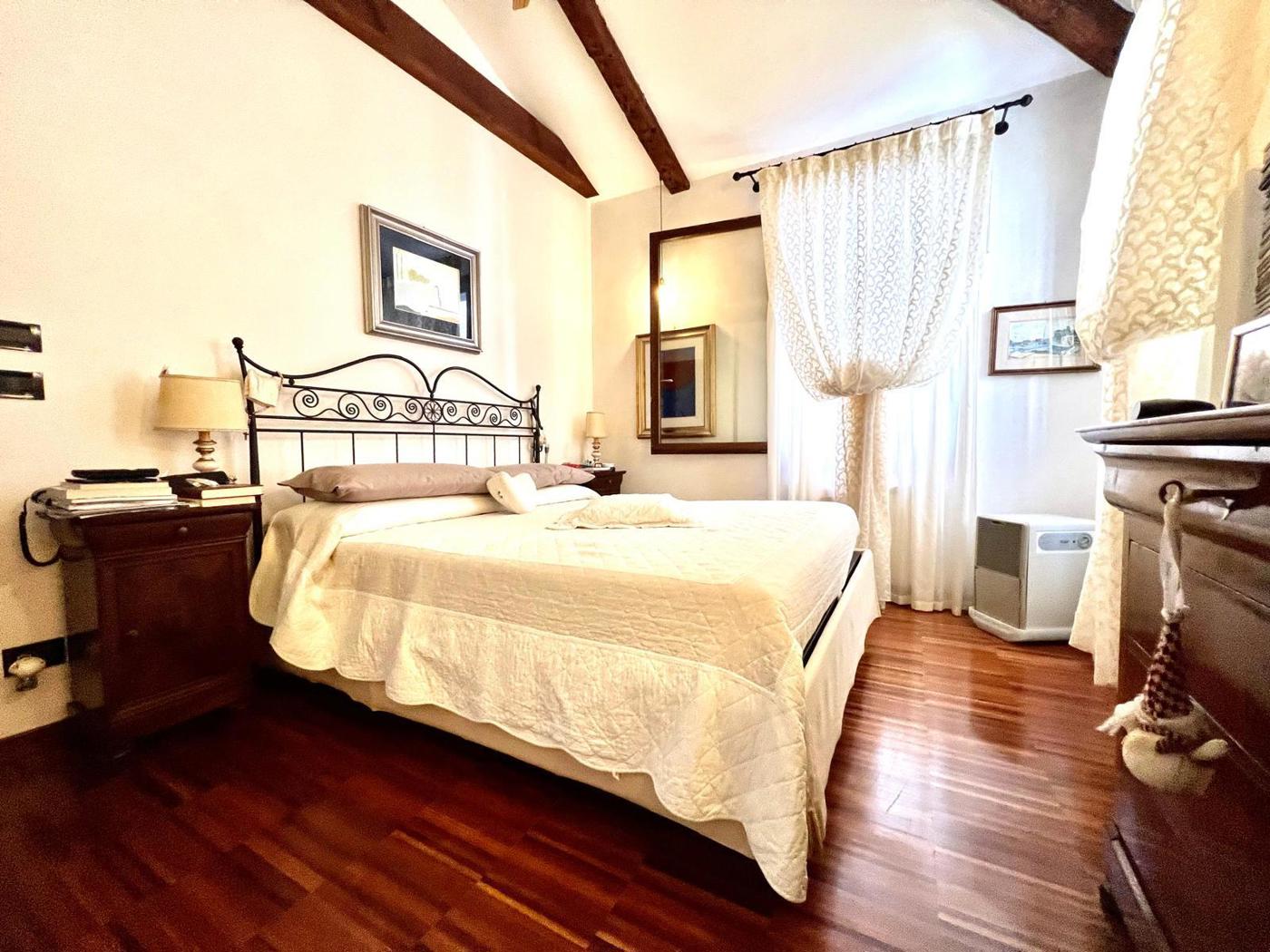 Gli interni, in ottime condizioni, sono impreziositi dal parquet in legno naturale e dalle travi a vista, elementi che donano eleganza e calore ad ogni ambiente.